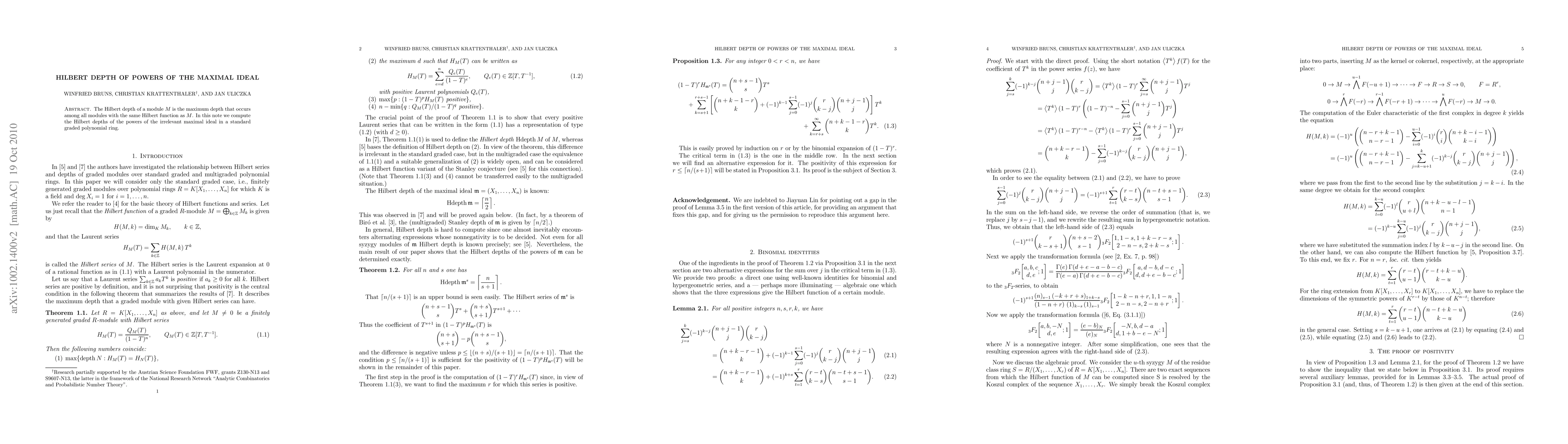 This paper computes the Hilbert depths of the powers of the irrelevant maximal ideal in a standard graded polynomial ring, providing insight into the module's depth relative to its Hilbert function. The findings contribute to understanding the depth properties of graded modules.