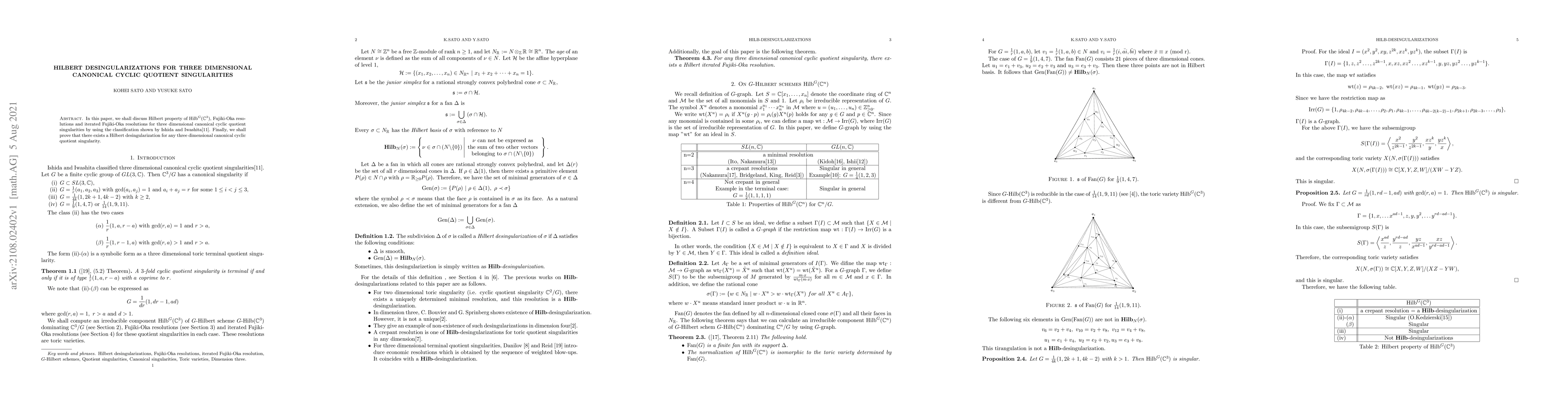 This paper explores the Hilbert property of ${\rm Hilb}^{G}(\mathbb{C}^{3})$ and Fujiki-Oka resolutions for three-dimensional canonical cyclic quotient singularities, proving the existence of a Hilbert desingularization using the classification by Ishida and Iwashita.