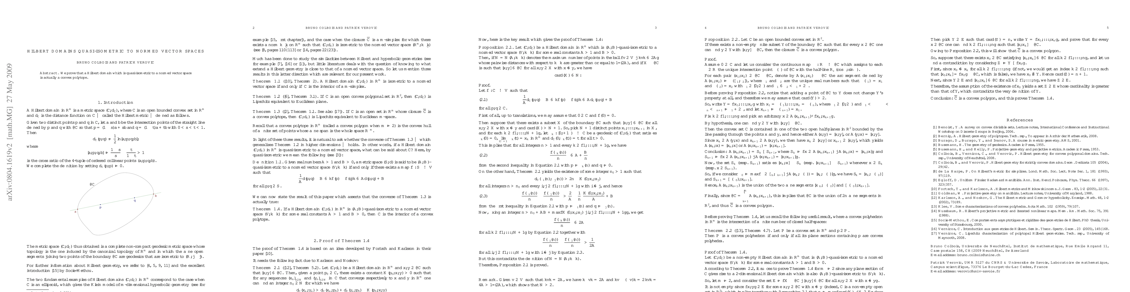 We prove that a Hilbert domain which is quasi-isometric to a normed vector space is actually a convex polytope.
