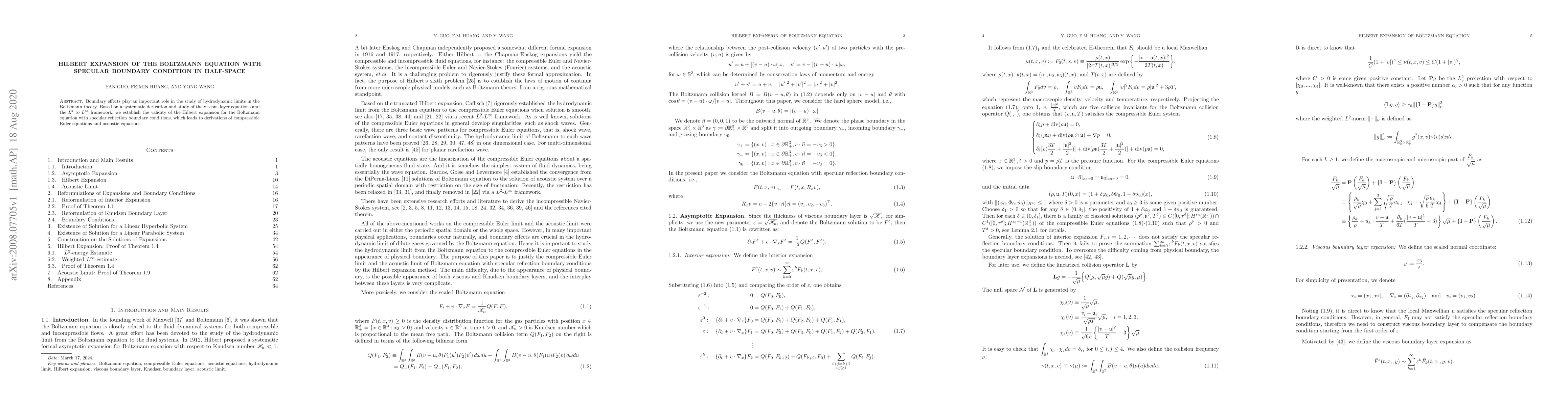 This paper establishes the validity of the Hilbert expansion for the Boltzmann equation under specular reflection boundary conditions, leading to derivations of compressible Euler and acoustic equations through a systematic study of viscous layer equations and the $L^2$ to $L^\infty$ framework.
