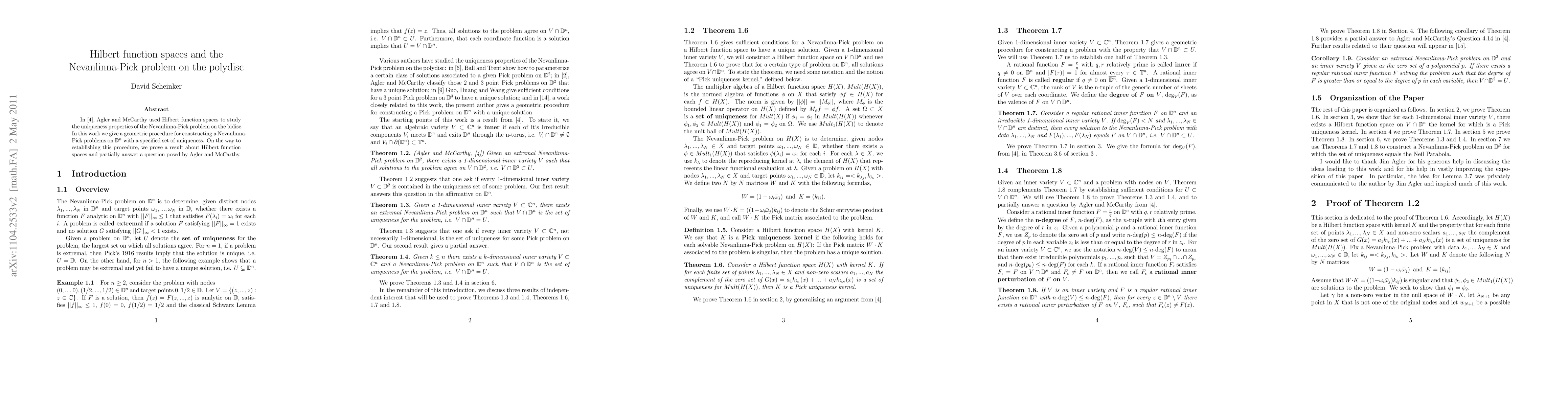 In the paper `Distinguished Varieties,' Agler and McCarthy used Hilbert function spaces to study the uniqueness properties of the Nevanlinna-Pick problem on the bidisc. In this work we give a geometric procedure for constructing a Nevanlinna-Pick problems on D^n with a specified set of uniqueness. On the way to establishing this procedure, we prove a result about Hilbert function spaces and partially answer a question posed by Agler and McCarthy.