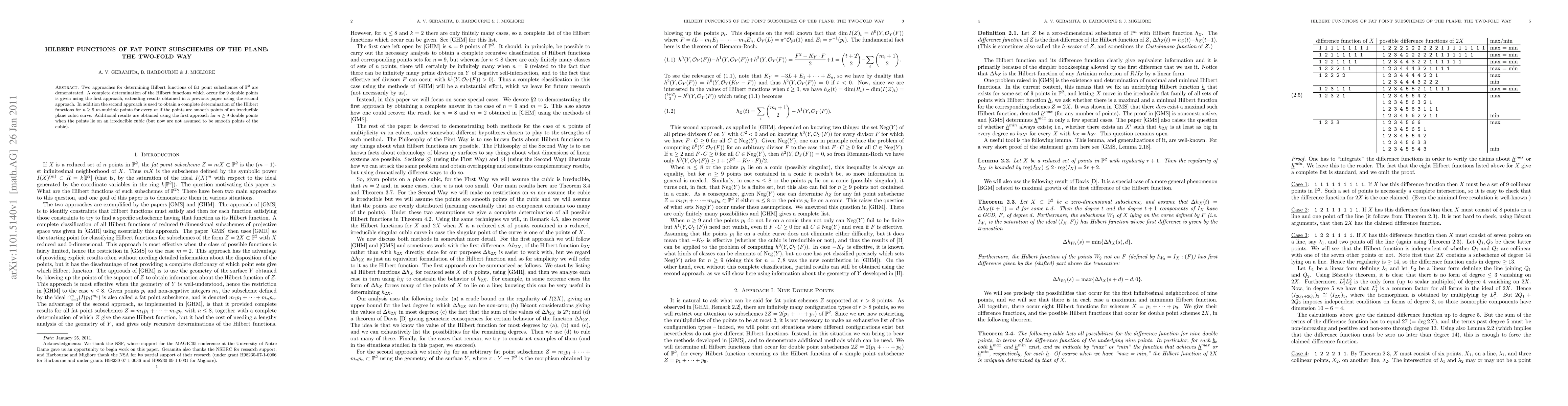 Two approaches for determining Hilbert functions of fat point subschemes of $\mathbb P^2$ are demonstrated. A complete determination of the Hilbert functions which occur for 9 double points is given using the first approach, extending results obtained in a previous paper using the second approach. In addition the second approach is used to obtain a complete determination of the Hilbert functions for $n\geq 9$ $m$-multiple points for every $m$ if the points are smooth points of an irreducible plane cubic curve. Additional results are obtained using the first approach for $n\geq 9$ double points when the points lie on an irreducible cubic (but now are not assumed to be smooth points of the cubic).