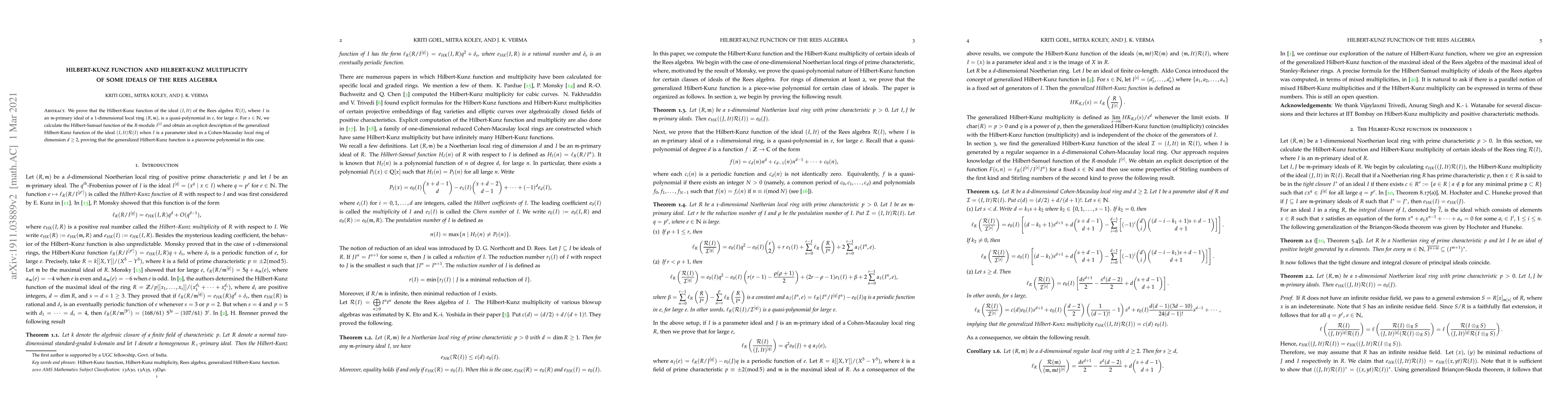 This paper proves that the Hilbert-Kunz function of the ideal $(I,It)$ in the Rees algebra $\mathcal{R}(I)$ is a quasi-polynomial for large $e$, and provides an explicit description of the generalized Hilbert-Kunz function for parameter ideals in Cohen-Macaulay local rings, showing it is piecewise polynomial.
