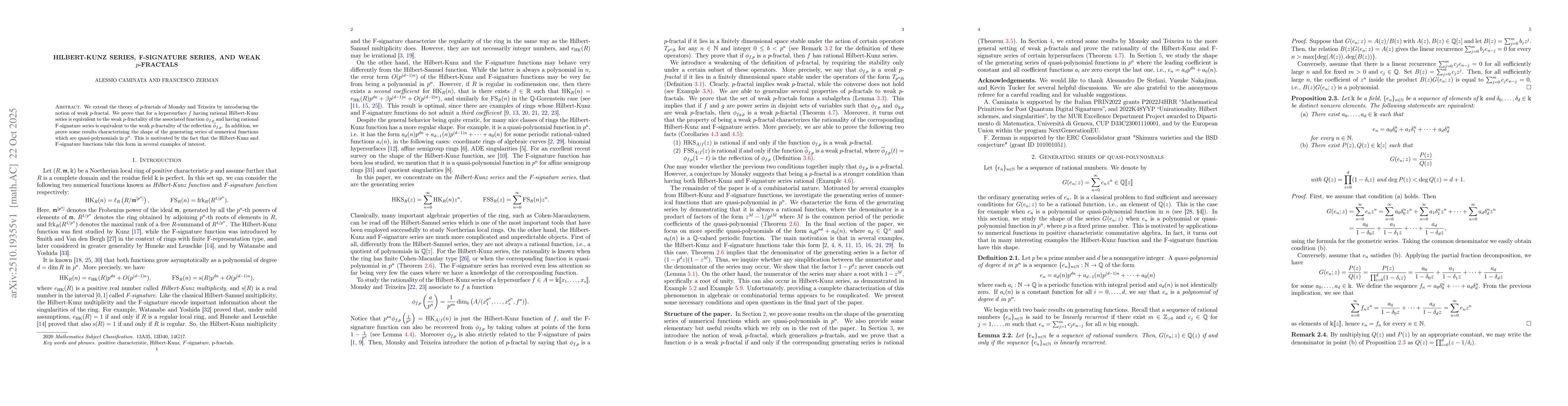 The research employs a combination of algebraic geometry and commutative algebra techniques, focusing on the analysis of Hilbert-Kunz functions and F-signature through the study of p-fractals and their properties in rings of positive characteristic.