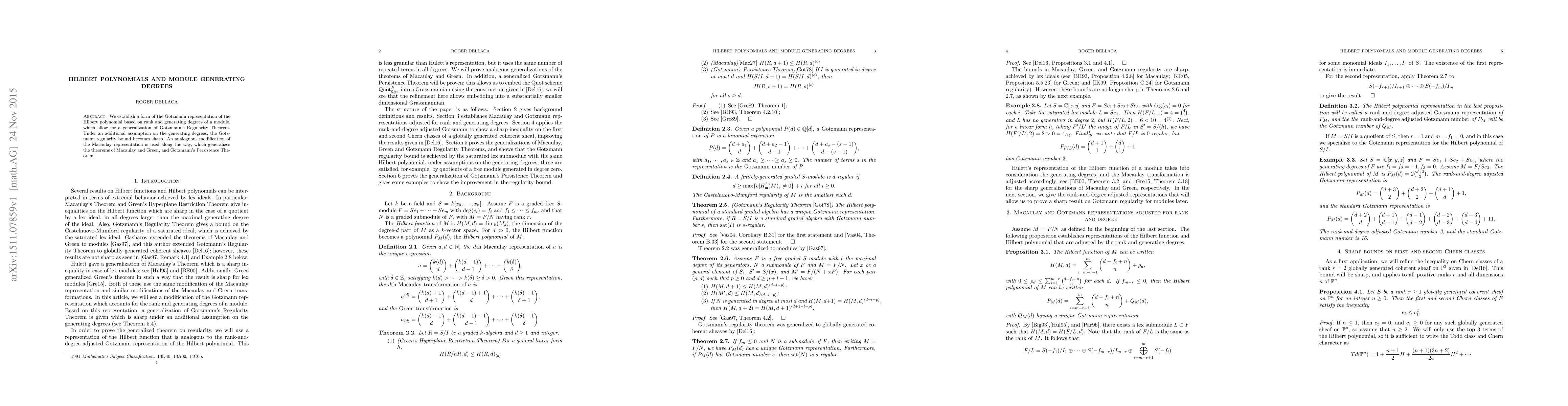 Researchers develop a new representation of Hilbert polynomials using module generating degrees, allowing for generalizations of several theorems in algebraic geometry, including Gotzmann's Regularity Theorem.