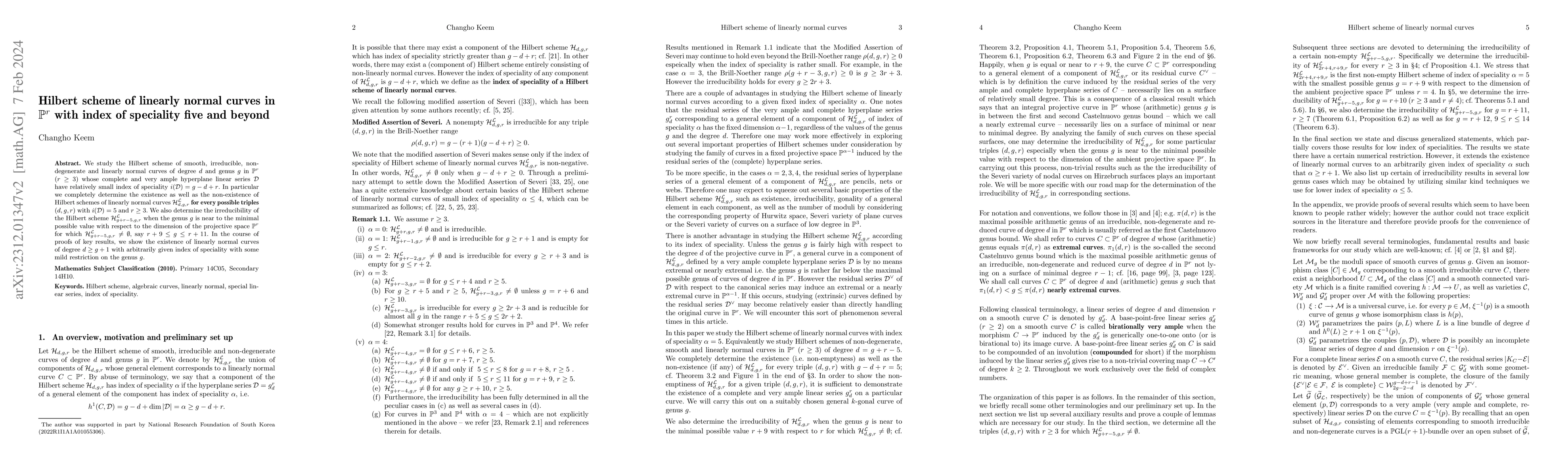 We study the Hilbert scheme of smooth, irreducible, non-degenerate and linearly normal curves of degree $d$ and genus $g$ in $\mathbb{P}^r$ ($r\ge 3$) whose complete and very ample hyperplane linear series $\mathcal{D}$ have relatively small index of speciality $i(\mathcal{D})=g-d+r$. In particular we determine the existence as well as the non-existence of Hilbert schemes of linearly normal curves $\mathcal{H}^{\mathcal{L}}_{d,g,r}$ for every possible triples $(d,g,r)$ with $i(\mathcal{D})=5$ and $r\ge 3$. We also determine the irreducibility of the Hilbert scheme $\mathcal{H}^{\mathcal{L}}_{g+r-5,g,r}$ when the genus $g$ is near to the minimal possible value with respect to the dimension of the projective space $\mathbb{P}^r$ for which $\mathcal{H}^{\mathcal{L}}_{g+r-5,g,r}\neq\emptyset$, say $r+9\le g\le r+11$. In the course of proofs of key results, we show the existence of linearly normal curves of degree $d\ge g+1$ with arbitrarily given index of speciality with some mild restriction on the genus $g$.