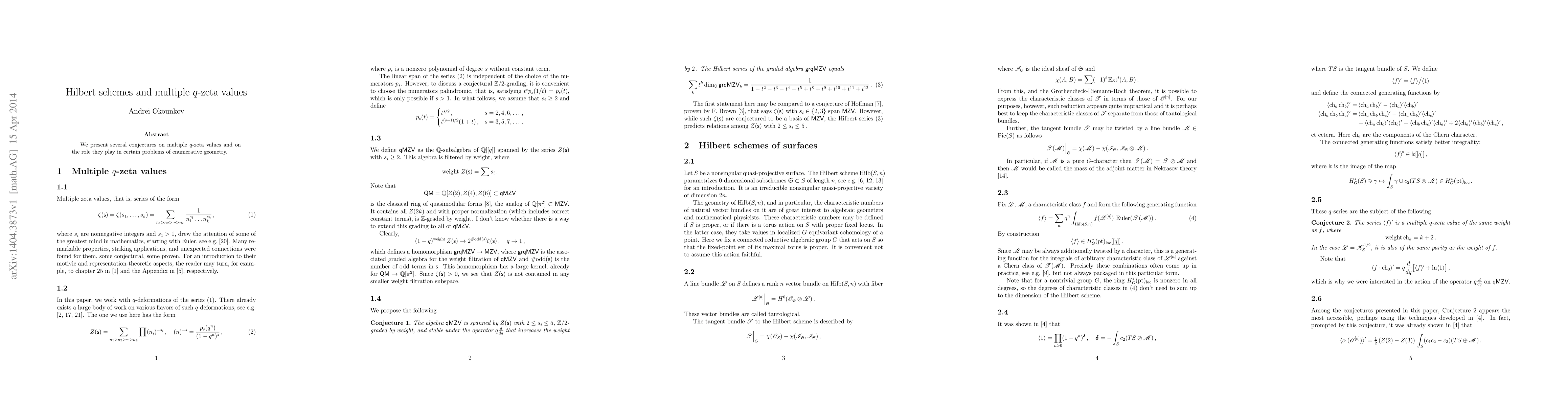 We present several conjectures on multiple q-zeta values and on the role they play in certain problems of enumerative geometry.