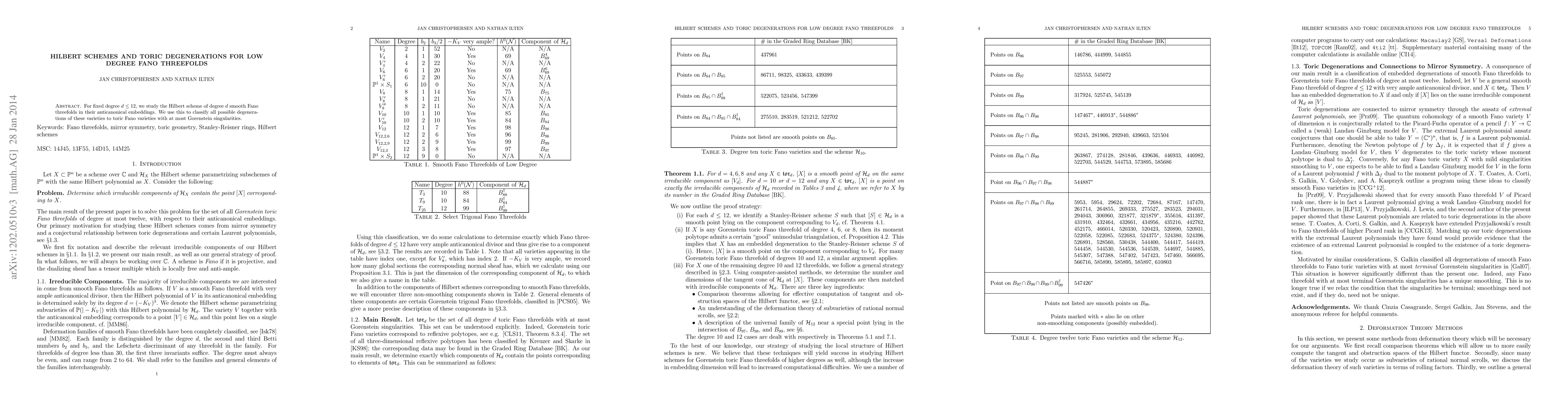 Summary: This research explores the Hilbert schemes of smooth Fano threefolds of degrees up to 12, aiming to classify their degenerations into toric Fano varieties with canonical Gorenstein singularities. The study provides a detailed understanding of these geometric structures through toric degenerations.