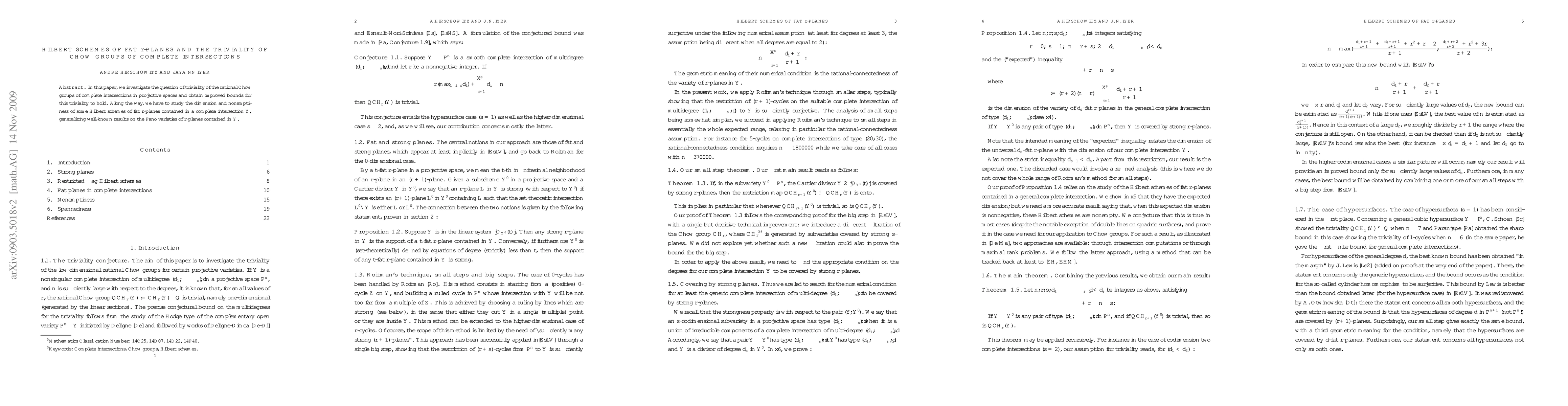 This paper explores the triviality of rational Chow groups for complete intersections in projective spaces, achieving better bounds for such triviality. It also generalizes results on Hilbert schemes of fat $r$-planes within these intersections, extending knowledge on Fano varieties of $r$-planes.