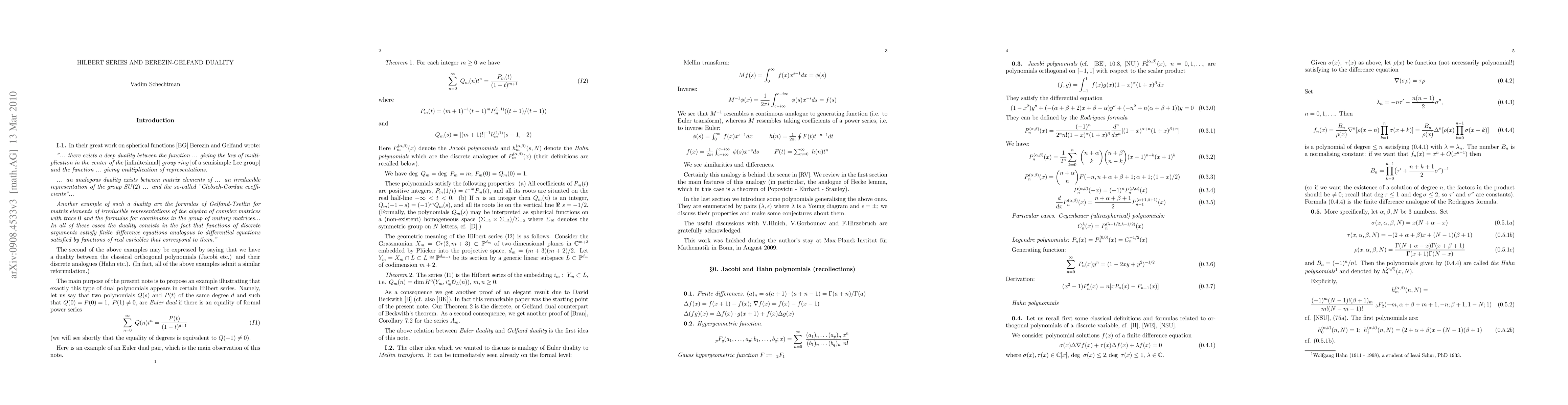 We give an example showing how Jacobi polynomials and their discrete counterparts (Hahn polynomials) appear in the Hilbert series of some homogeneous spaces.