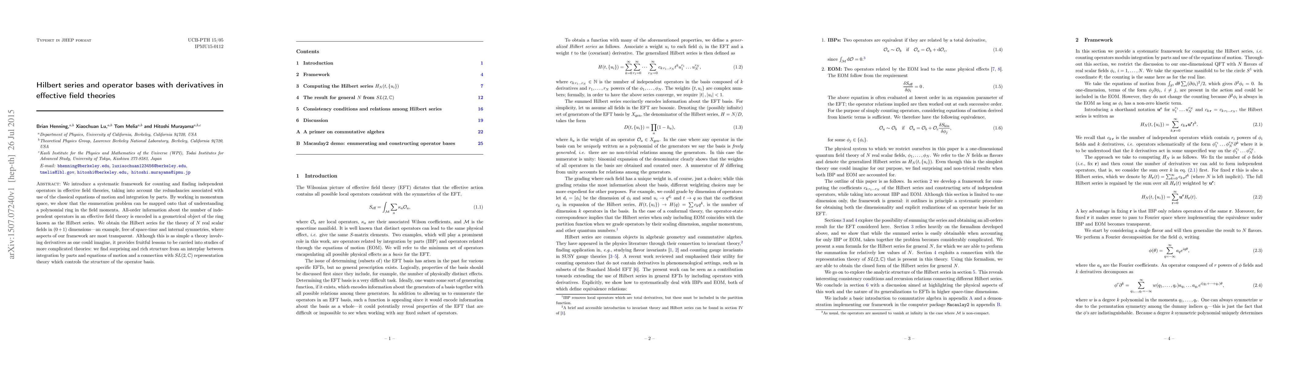 The paper introduces a systematic framework for identifying independent operators in effective field theories, using Hilbert series and momentum space techniques to manage redundancies from classical equations of motion and integration by parts. It demonstrates this method in a simple (0+1) dimensional theory of N real scalar fields, revealing a rich interplay between integration by parts, equations of motion, and SL(2,C) representation theory.