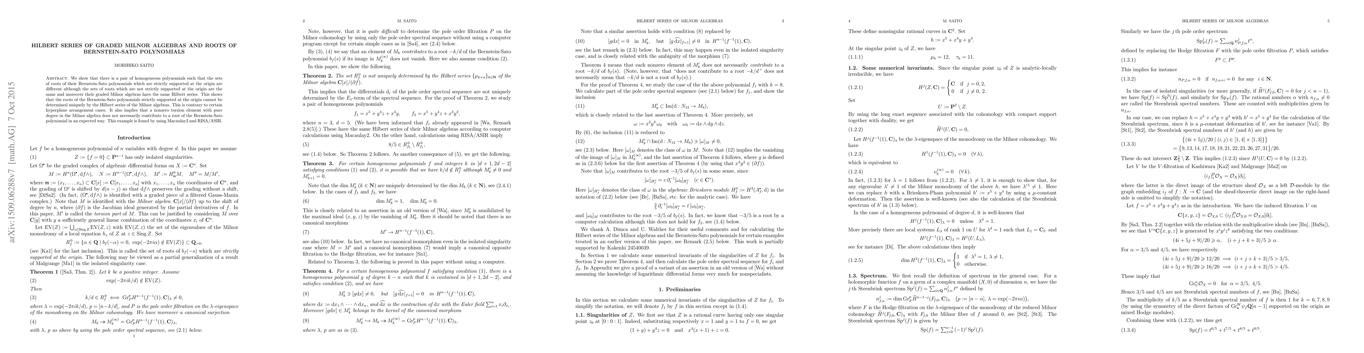 This paper demonstrates that two graded Milnor algebras can have the same Hilbert series while their Bernstein-Sato polynomials' roots strictly supported at the origin differ, challenging the uniqueness of such roots determined by the Hilbert series. This finding contradicts certain hyperplane arrangement cases and suggests that torsion elements in Milnor algebras may not always correlate with Bernstein-Sato polynomial roots.