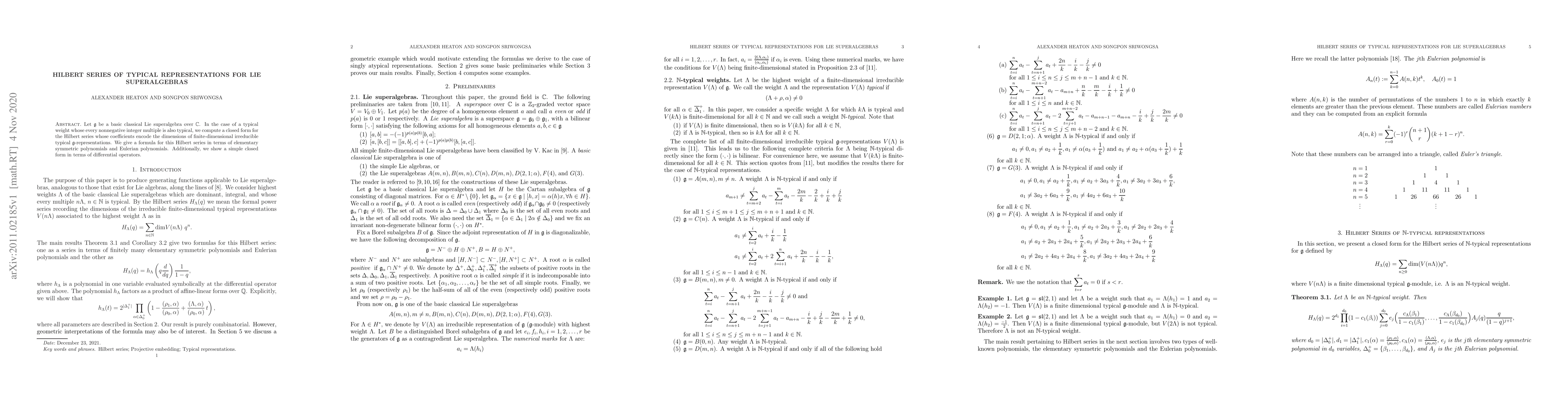 This research computes a closed form for the Hilbert series of typical representations for classical Lie superalgebras, providing formulas in terms of elementary symmetric polynomials, Eulerian polynomials, and differential operators to encode the dimensions of these representations.