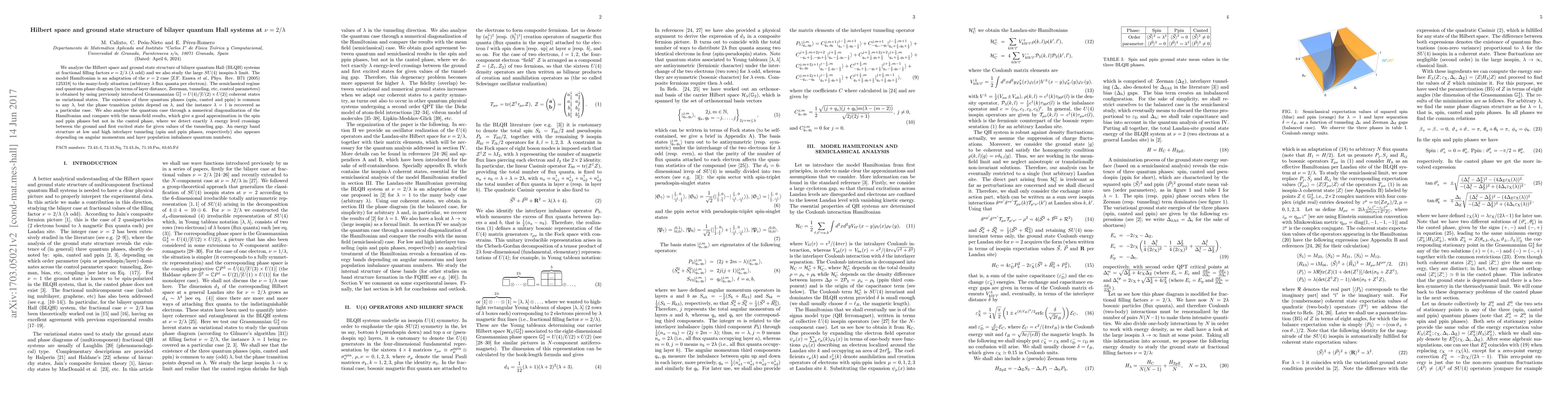 This paper investigates the Hilbert space and ground state structure of bilayer quantum Hall systems at fractional filling factors $\nu=2/\lambda$ ($\lambda$ odd), revealing three quantum phases: spin, canted, and ppin. The study uses Grassmannian coherent states and numerical diagonalization, showing phase transition points vary with $\lambda$ and mean-field approximations work well except in the canted phase.