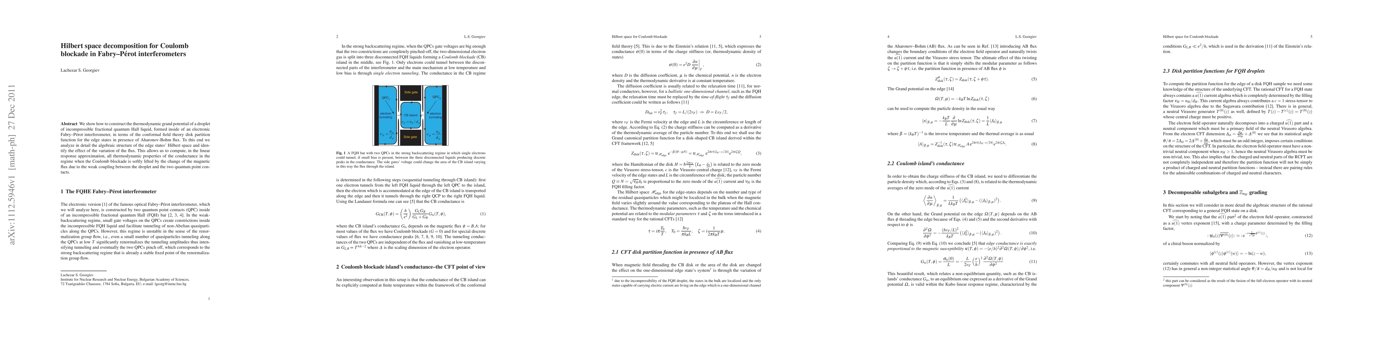 This paper constructs the thermodynamic grand potential of a fractional quantum Hall liquid in a Fabry-Pérot interferometer using conformal field theory, analyzing the Hilbert space of edge states and their response to Aharonov-Bohm flux variations to compute conductance properties under Coulomb blockade conditions.