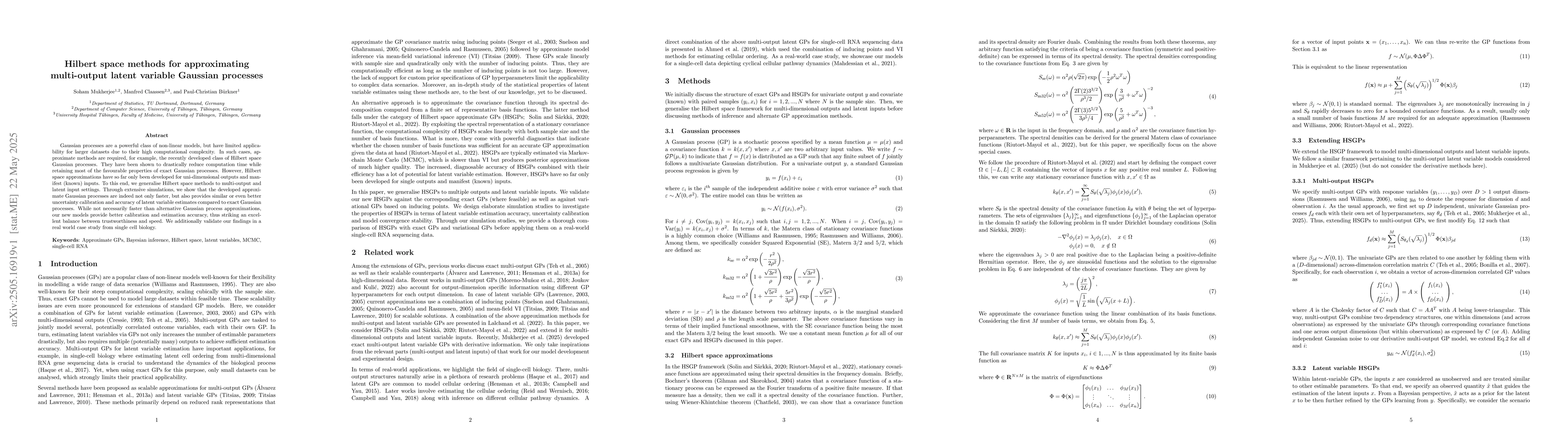 This work is novel as it generalizes Hilbert space methods to multi-output and latent input settings, addressing a gap in existing research focused mainly on unidimensional outputs and known inputs.