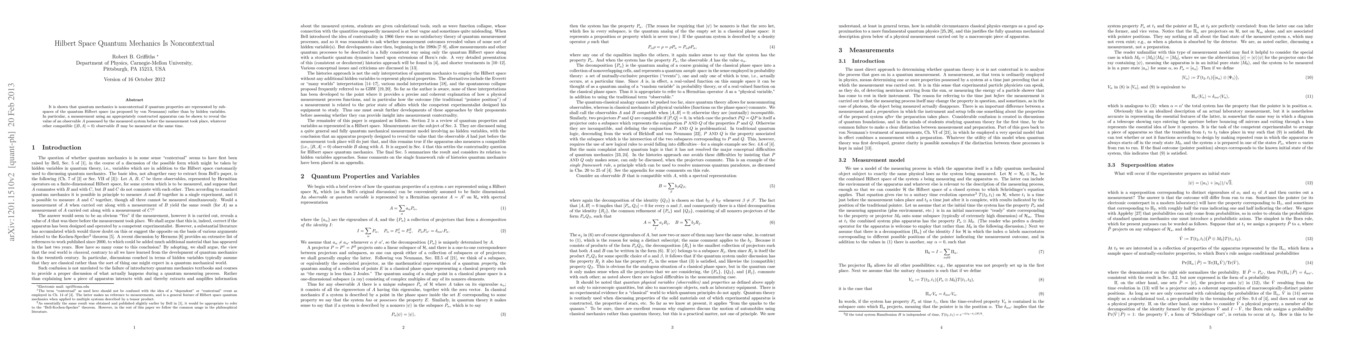 This paper demonstrates that quantum mechanics is noncontextual when quantum properties are represented by Hilbert space subspaces, refuting the need for hidden variables. It shows that measurements can reveal the value of an observable before the measurement, regardless of other compatible observables being measured simultaneously.