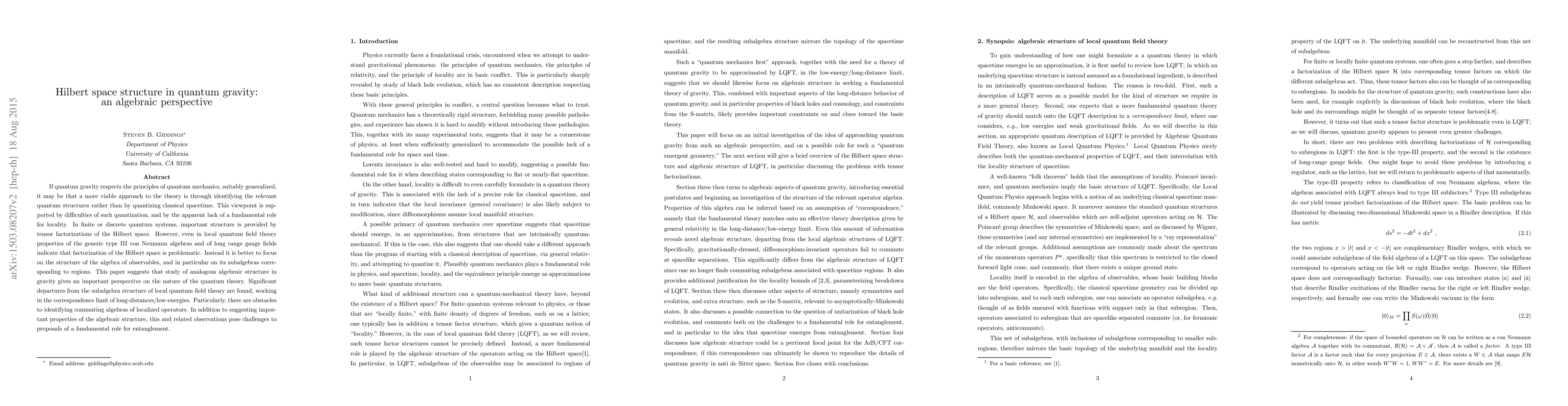 If quantum gravity respects the principles of quantum mechanics, suitably generalized, it may be that a more viable approach to the theory is through identifying the relevant quantum structures rather than by quantizing classical spacetime. This viewpoint is supported by difficulties of such quantization, and by the apparent lack of a fundamental role for locality. In finite or discrete quantum systems, important structure is provided by tensor factorizations of the Hilbert space. However, even in local quantum field theory properties of the generic type III von Neumann algebras and of long range gauge fields indicate that factorization of the Hilbert space is problematic. Instead it is better to focus on the structure of the algebra of observables, and in particular on its subalgebras corresponding to regions. This paper suggests that study of analogous algebraic structure in gravity gives an important perspective on the nature of the quantum theory. Significant departures from the subalgebra structure of local quantum field theory are found, working in the correspondence limit of long-distances/low-energies. Particularly, there are obstacles to identifying commuting algebras of localized operators. In addition to suggesting important properties of the algebraic structure, this and related observations pose challenges to proposals of a fundamental role for entanglement.