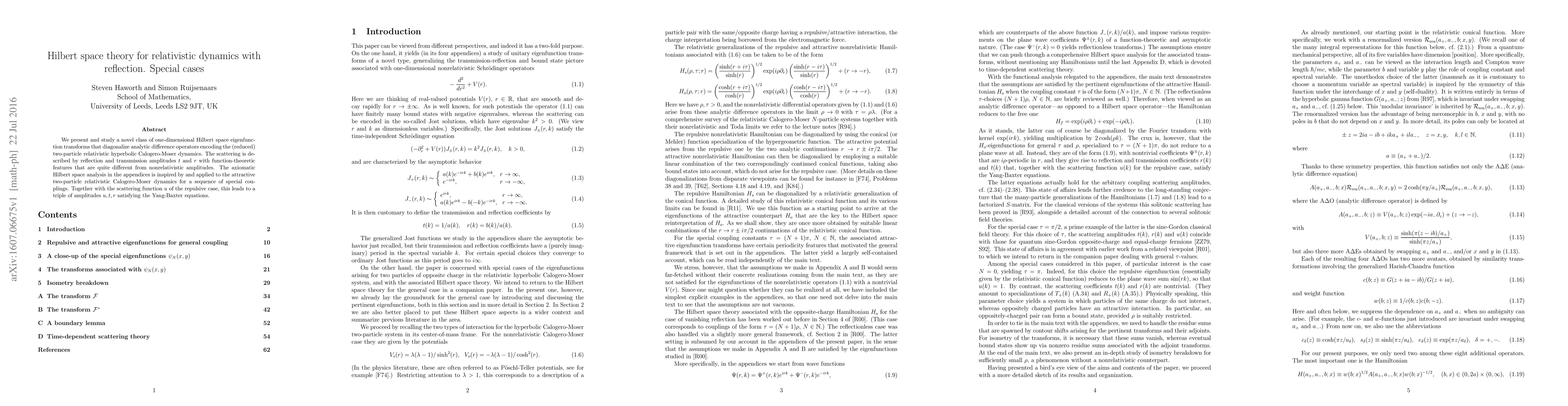 This paper introduces a new approach to studying relativistic dynamics with reflection, using Hilbert space theory to diagonalize difference operators and derive scattering amplitudes that satisfy the Yang-Baxter equations.
