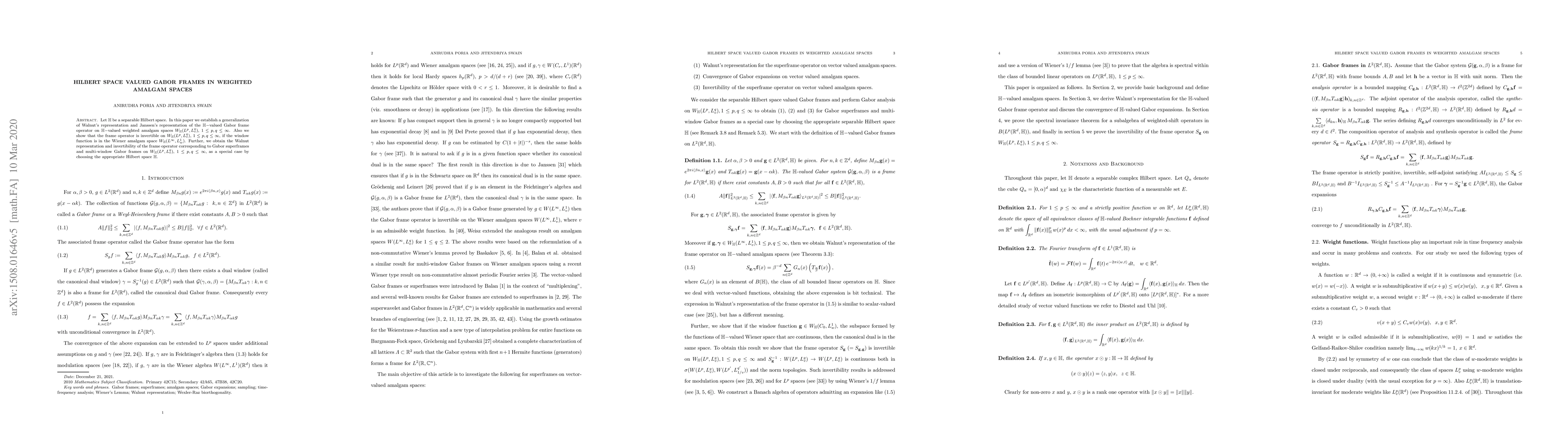 Let $\mathbb{H}$ be a separable Hilbert space. In this paper we establish a generalization of Walnut's representation and Janssen's representation of the $\mathbb{H}-$valued Gabor frame operator on $\mathbb{H}-$valued weighted amalgam spaces $W_{\mathbb{H}}(L^p,L^q_v)$, $1 \leq p, q \leq \infty$. Also we show that the frame operator is invertible on $W_{\mathbb{H}}(L^p,L^q_v)$, $1 \leq p, q \leq \infty$, if the window function is in the Wiener amalgam space $W_{\mathbb{H}}(L^{\infty},L^1_w)$. Further, we obtain the Walnut representation and invertibility of the frame operator corresponding to Gabor superframes and multi-window Gabor frames on $W_{\mathbb{H}}(L^p,L^q_v)$, $1 \leq p, q \leq \infty,$ as a special case by choosing the appropriate Hilbert space $\mathbb{H}$.