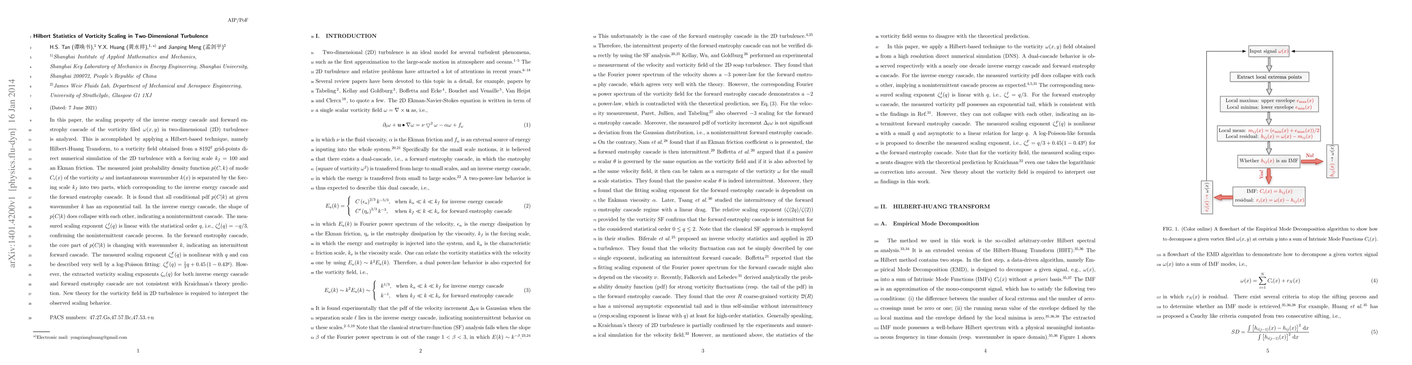 This paper analyzes the scaling properties of vorticity in two-dimensional turbulence using the Hilbert-Huang Transform on a high-resolution simulation. It finds nonintermittent inverse energy cascades with linear scaling and intermittent forward enstrophy cascades with a log-Poisson scaling, contradicting Kraichnan's theory and suggesting a need for new theoretical models.