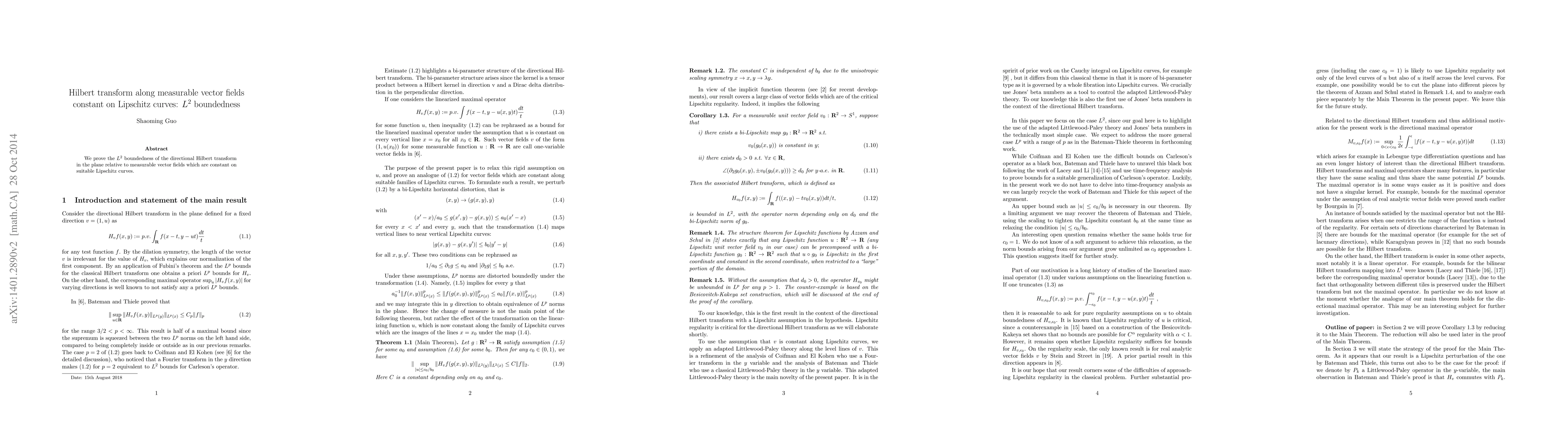 The paper proves that a specific type of transform is $L^2$ bounded when applied to certain types of vector fields on Lipschitz curves, with implications for mathematical analysis.