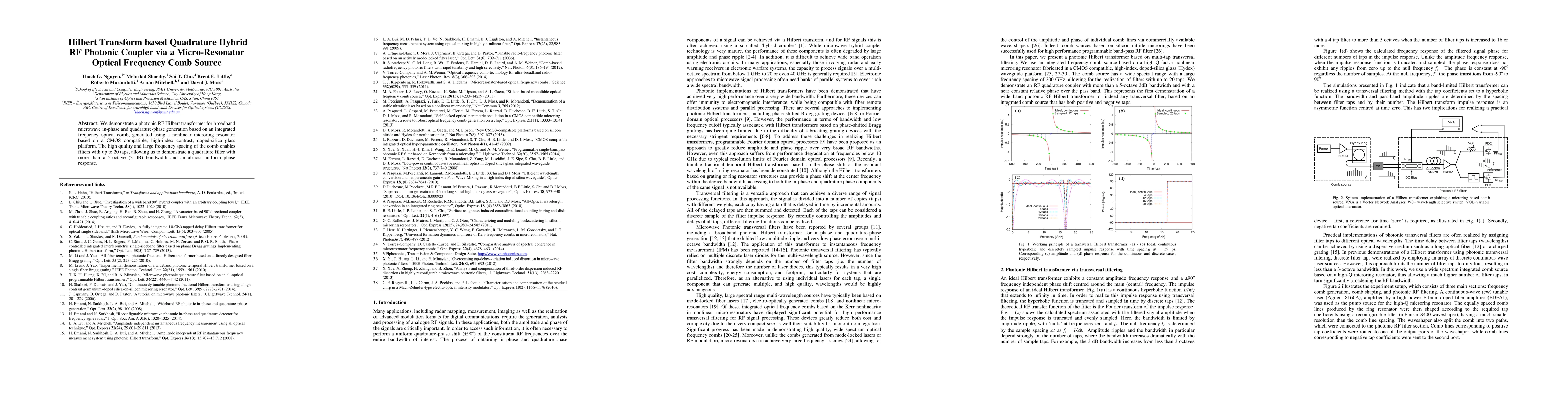 This research presents a broadband microwave RF Hilbert transformer using an integrated frequency optical comb from a microring resonator, enabling quadrature filters with a 5-octave bandwidth and uniform phase response on a CMOS-compatible platform.