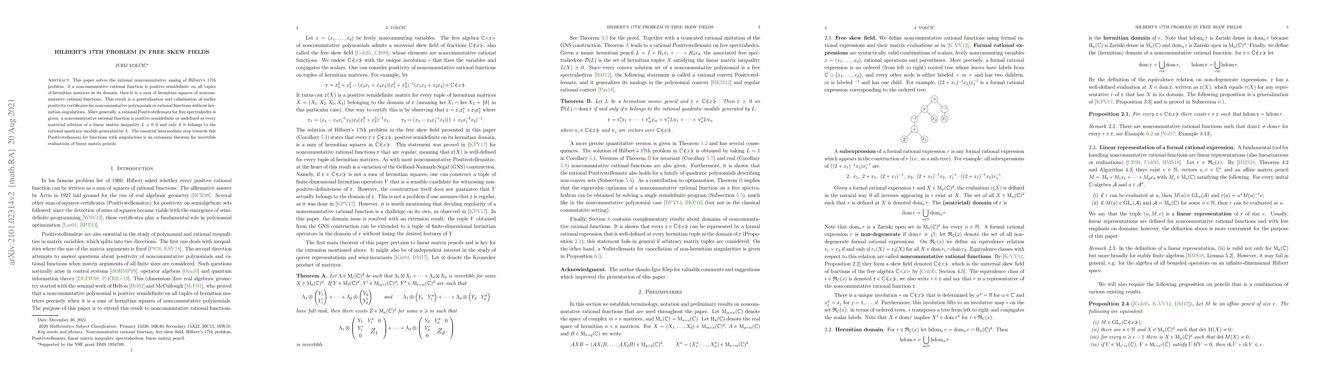This paper resolves the rational noncommutative version of Hilbert's 17th problem by proving that positive semidefinite noncommutative rational functions are sums of hermitian squares. It also establishes a rational Positivstellensatz for free spectrahedra, linking positive semidefiniteness to rational quadratic modules.