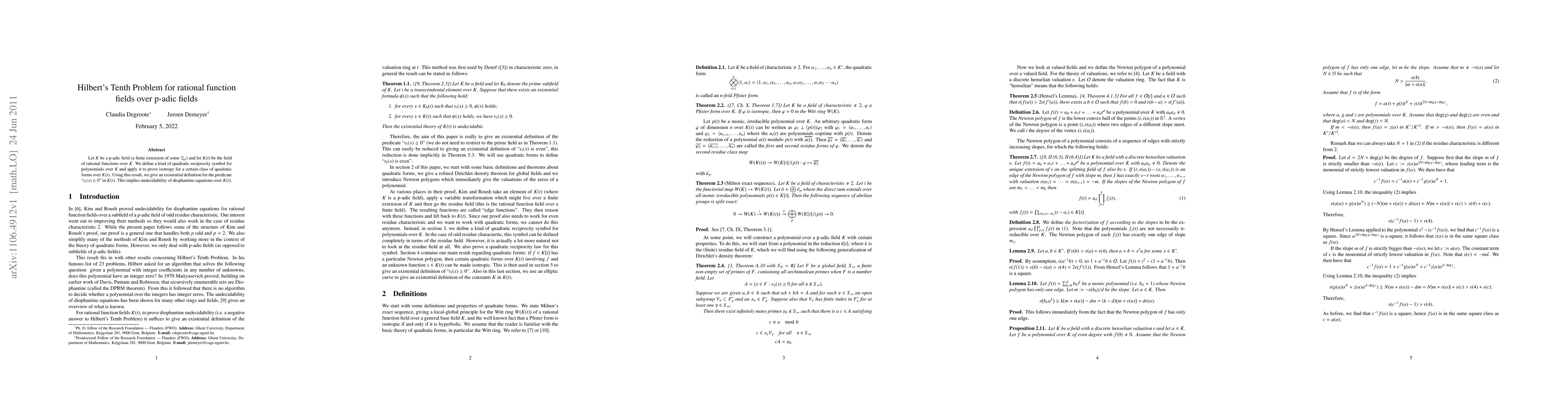 Researchers prove undecidability of Diophantine equations over p-adic fields using quadratic reciprocity and isotropy for quadratic forms, revealing the intractability of solving certain problems in rational function fields.