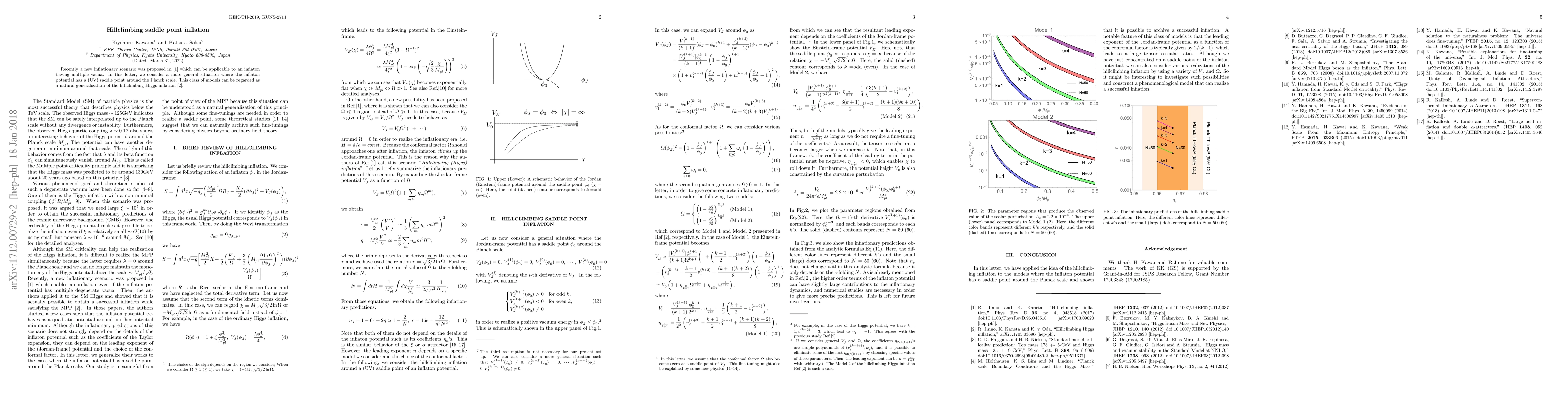 Recently a new inflationary scenario was proposed in arXiv:1703.09020 which can be applicable to an inflaton having multiple vacua. In this letter, we consider a more general situation where the inflaton potential has a (UV) saddle point around the Planck scale. This class of models can be regarded as a natural generalization of the hillclimbing Higgs inflation (arXiv:1705.03696).