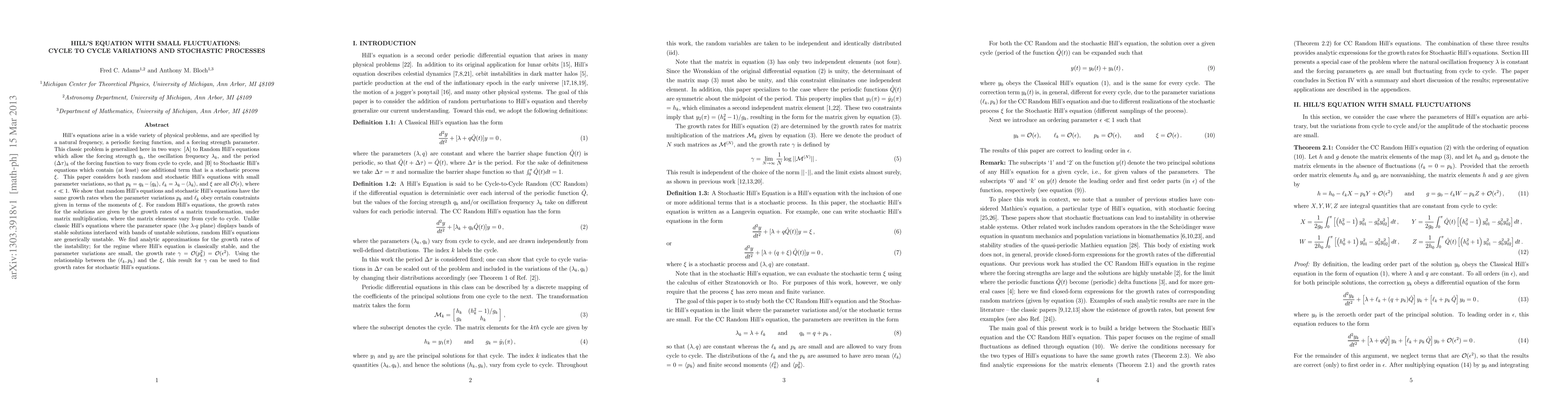 Research paper explores how small variations in parameters of Hill's equations affect their stability, finding that random and stochastic versions have the same growth rates under certain conditions, with instability typically occurring generically.