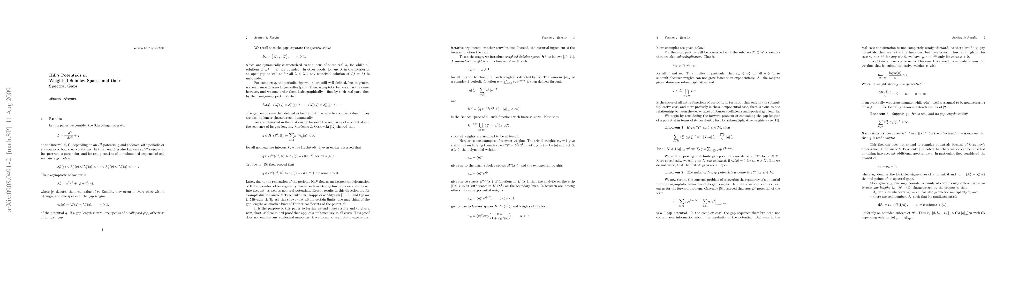 We describe a new, short proof of some facts relating the gap lengths of the spectrum of a potential of Hill's equation to its regularity. For example, a real potential is in a weighted Gevrey-Sobolev space if and only if its gap lengths belong to a similarly weighted sequence space. An extension of this result to complex potentials is proven as well. We also recover Trubowitz results about analytic potentials. The proof essentially employs the implicit function theorem.