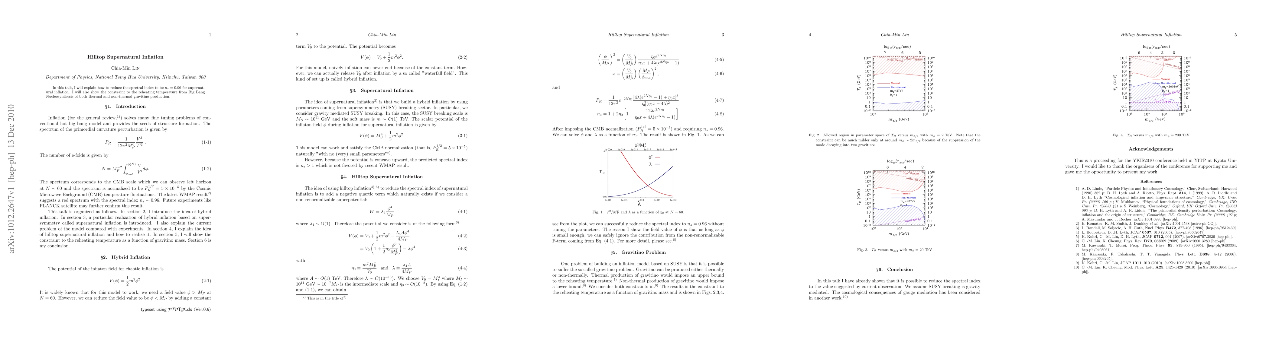 The research used a hybrid inflation model with gravity-mediated supersymmetry breaking, incorporating a negative quartic term to reduce the spectral index.