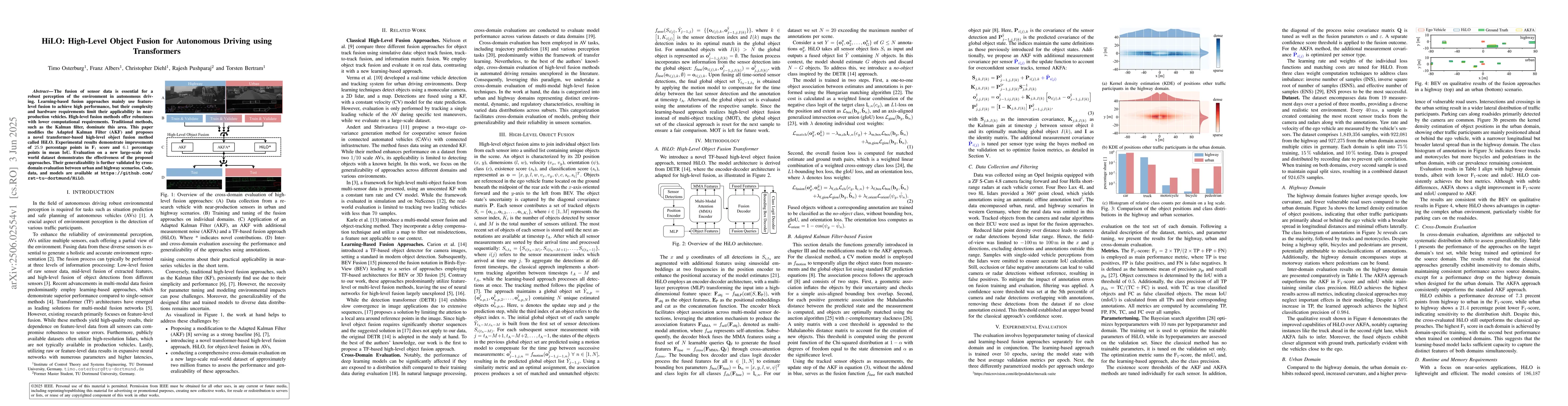 The paper proposes HiLO, a transformer-based high-level object fusion method that modifies the Adapted Kalman Filter (AKF) for autonomous driving sensor data fusion.