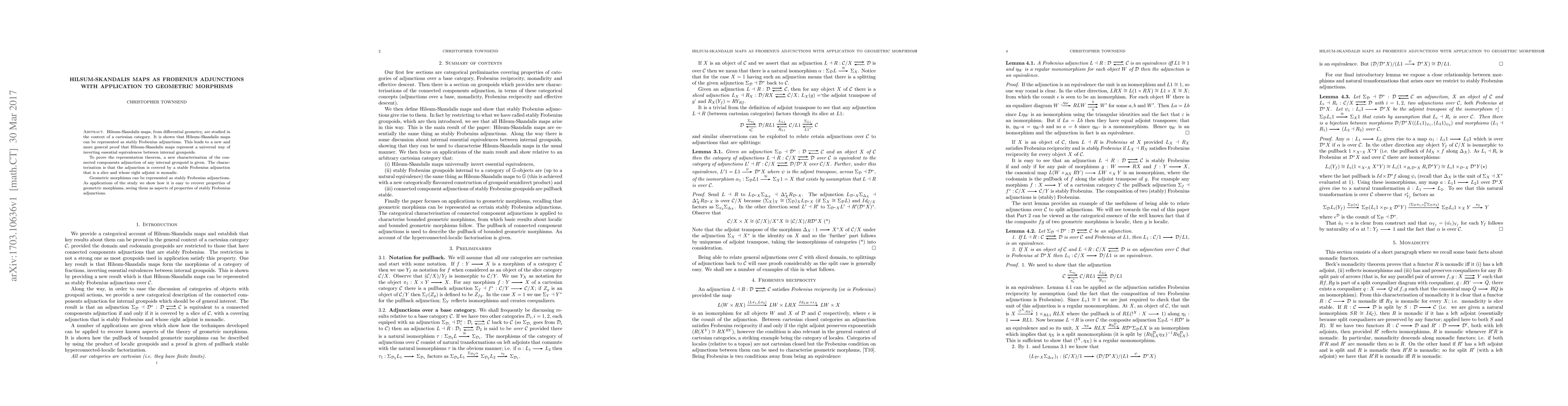 Hilsum-Skandalis maps, from differential geometry, are studied in the context of a cartesian category. It is shown that Hilsum-Skandalis maps can be represented as stably Frobenius adjunctions. This leads to a new and more general proof that Hilsum-Skandalis maps represent a universal way of inverting essential equivalences between internal groupoids. To prove the representation theorem, a new characterisation of the con- nected components adjunction of any internal groupoid is given. The charaterisation is that the adjunction is covered by a stable Frobenius adjunction that is a slice and whose right adjoint is monadic. Geometric morphisms can be represented as stably Frobenius adjunctions. As applications of the study we show how it is easy to recover properties of geometric morphisms, seeing them as aspects of properties of stably Frobenius adjunctions.