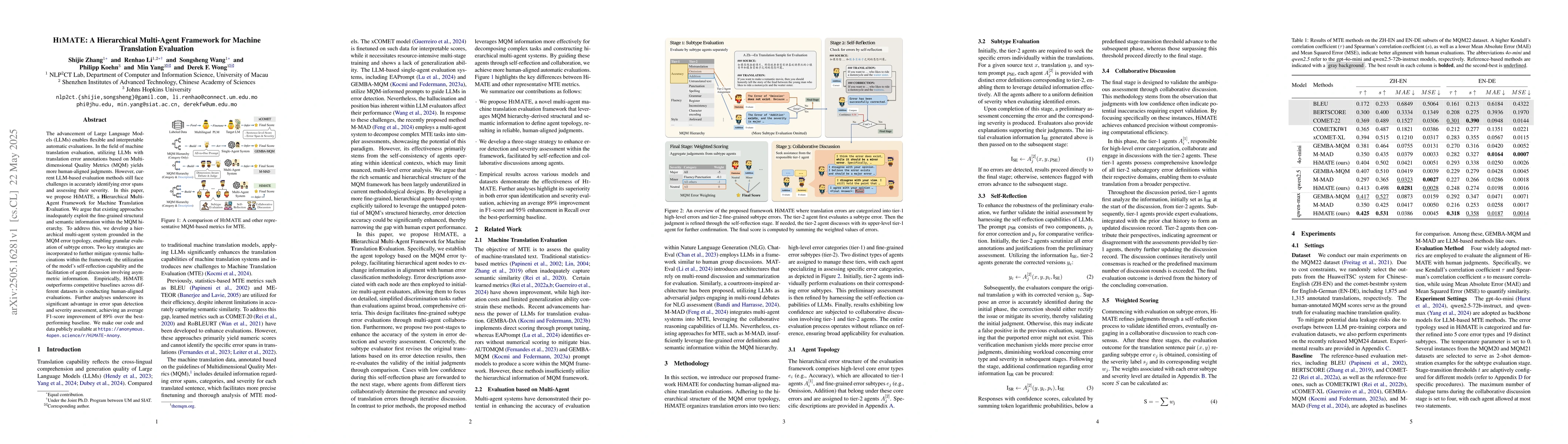 HiMATE distinguishes itself by effectively exploiting the fine-grained structural and semantic information within the MQM hierarchy, incorporating self-reflection capabilities of LLMs, and facilitating agent discussions involving asymmetric information.
