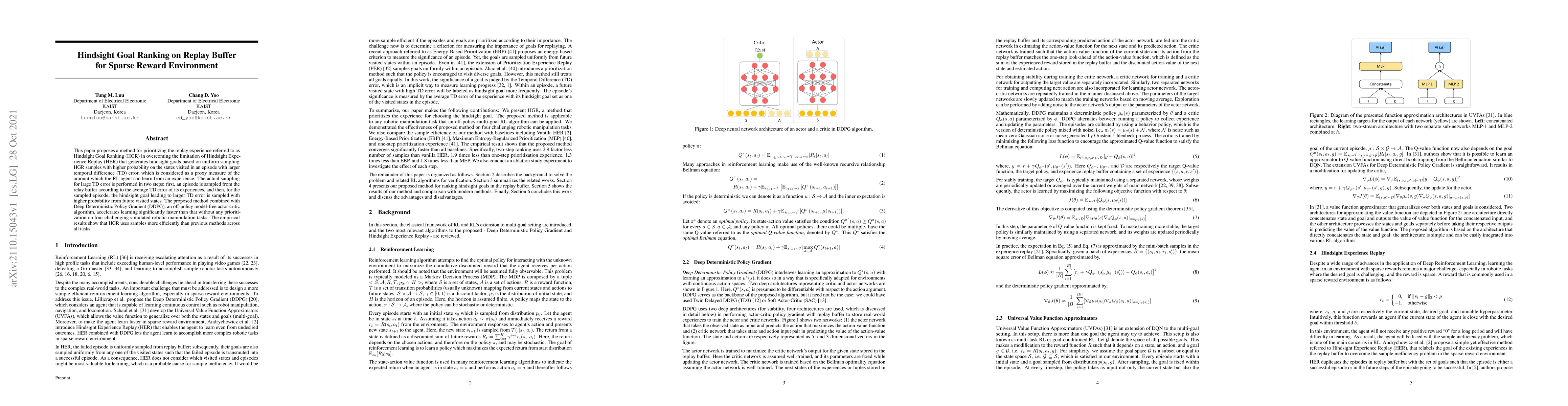 This paper introduces Hindsight Goal Ranking (HGR) to prioritize replay experiences in reinforcement learning environments with sparse rewards, enhancing the effectiveness of Hindsight Experience Replay (HER) by focusing on states with higher temporal difference error. Combined with Deep Deterministic Policy Gradient (DDPG), HGR significantly accelerates learning across simulated robotic manipulation tasks, demonstrating more efficient sample usage than prior methods.