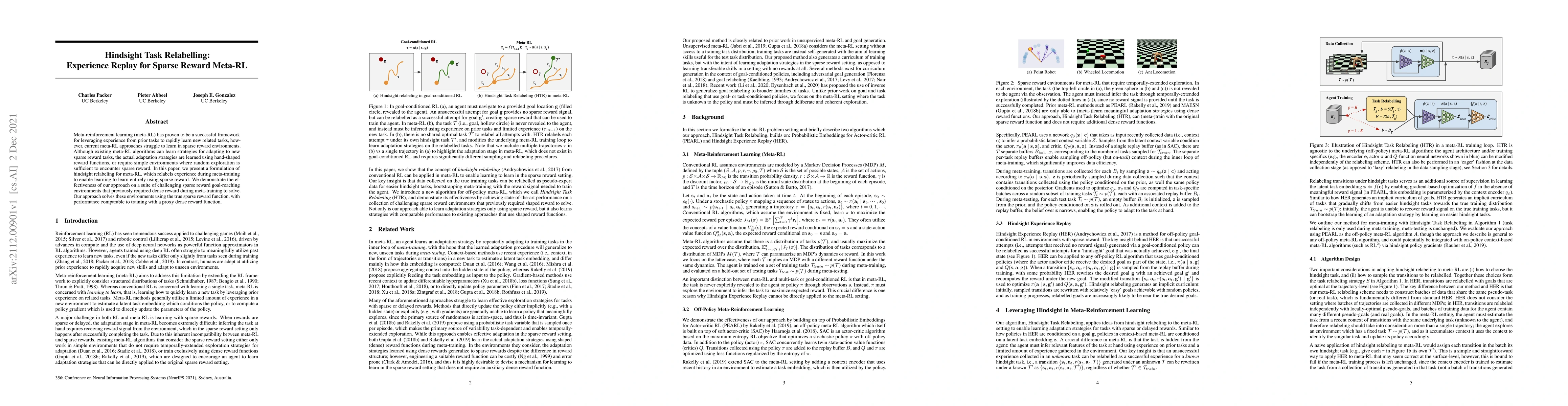 This paper proposes a hindsight task relabelling method for meta-reinforcement learning to enhance performance in sparse reward environments. The method relabels meta-training experiences to mimic dense rewards, enabling effective learning using sparse rewards, and demonstrates comparable performance to dense reward training on challenging goal-reaching tasks.