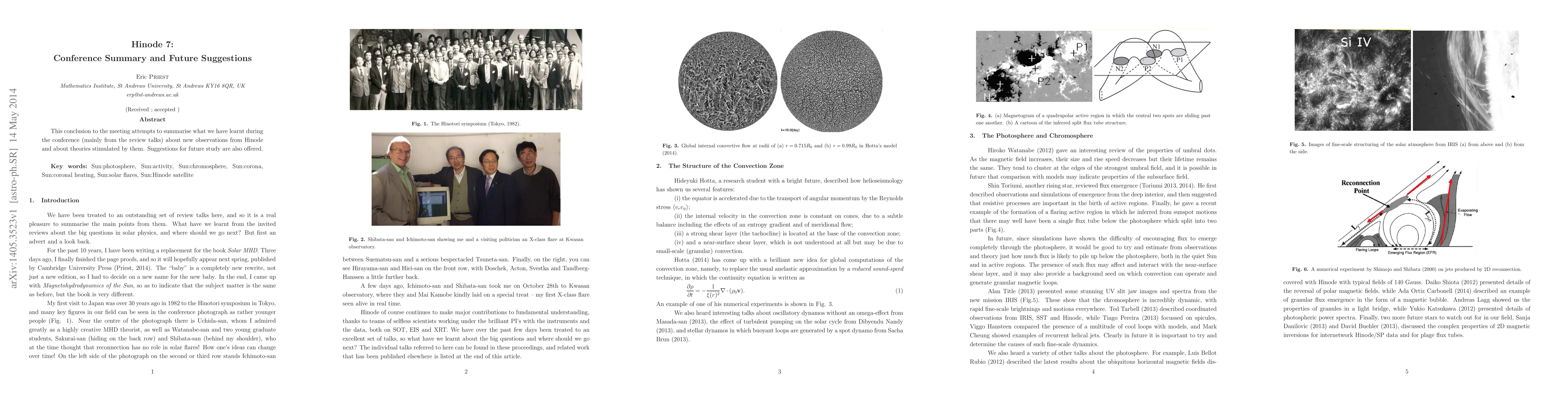 This conclusion to the meeting attempts to summarise what we have learnt during the conference (mainly from the review talks) about new observations from Hinode and about theories stimulated by them. Suggestions for future study are also offered.