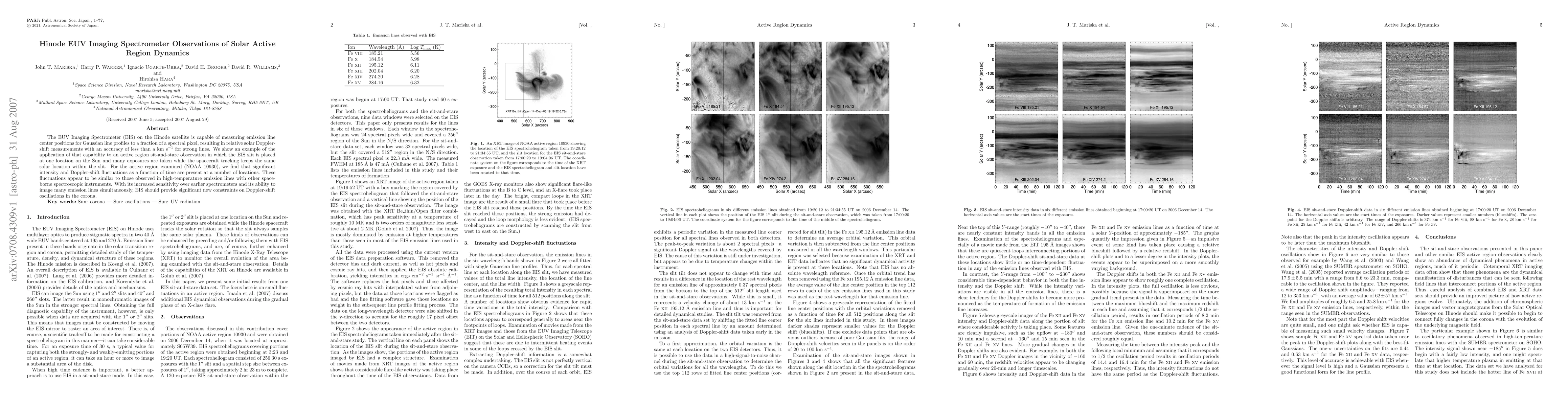 The Hinode EUV Imaging Spectrometer (EIS) reveals significant intensity and Doppler-shift fluctuations in active region NOAA 10930, indicating potential new constraints on coronal oscillations. The instrument's high accuracy and sensitivity enable detailed observations of solar dynamics.
