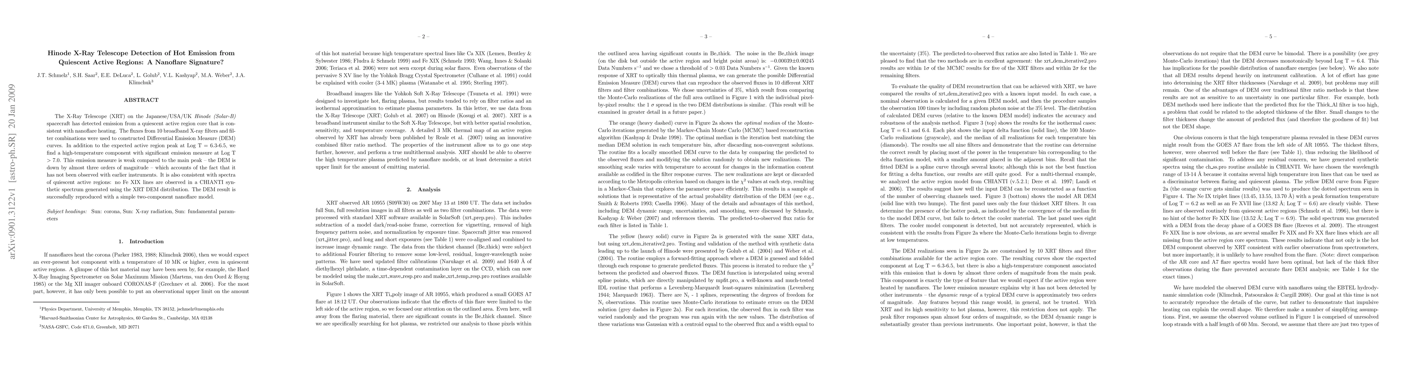 The Hinode X-Ray Telescope detected hot emission from a quiescent active region, suggesting nanoflare heating, with a high-temperature component not previously observed due to its low emission measure. This component is consistent with a two-component nanoflare model.