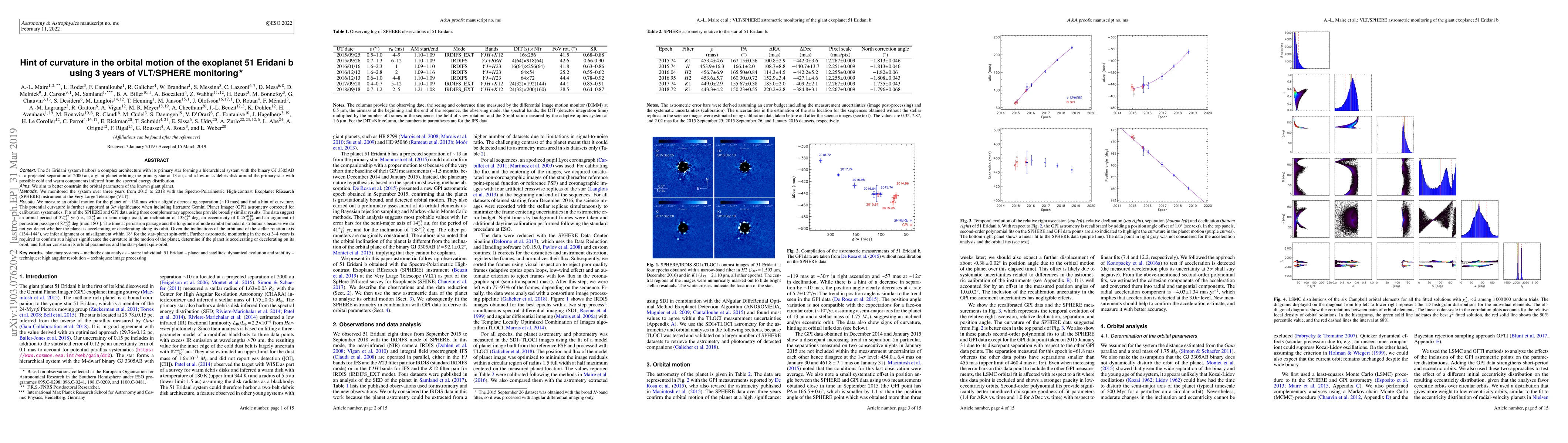Astronomers monitored 51 Eridani b for 3 years using VLT/SPHERE and found a hint of curvature in its orbital motion, with results suggesting an eccentric orbit and possible acceleration or deceleration along its path.