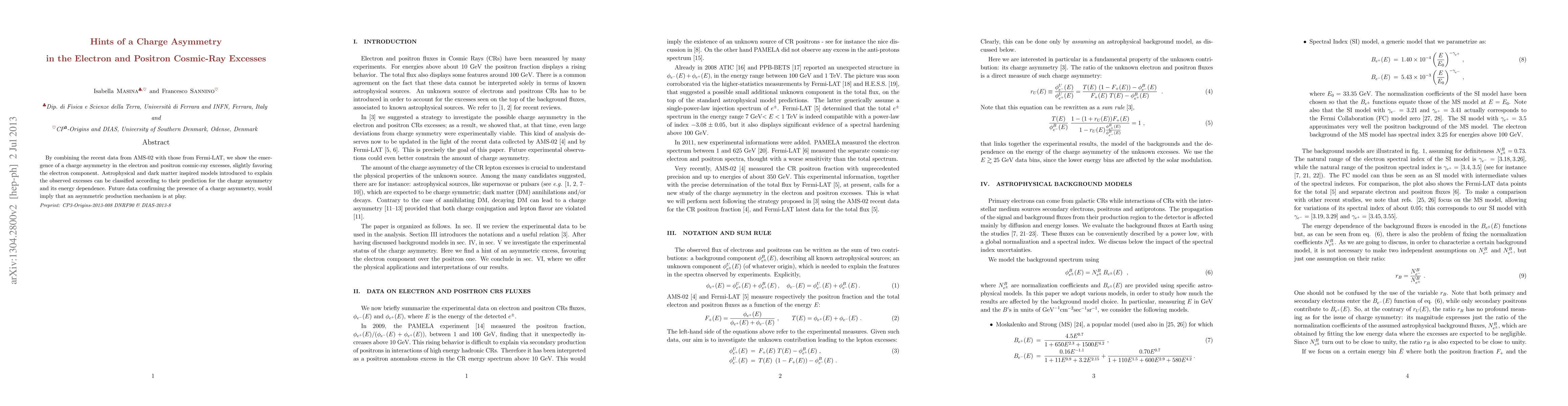 This study combines AMS-02 and Fermi-LAT data to reveal a slight charge asymmetry favoring the electron component in cosmic-ray excesses. Models explaining these excesses can now be categorized by their predictions for this asymmetry, suggesting an asymmetric production mechanism if confirmed by future data.