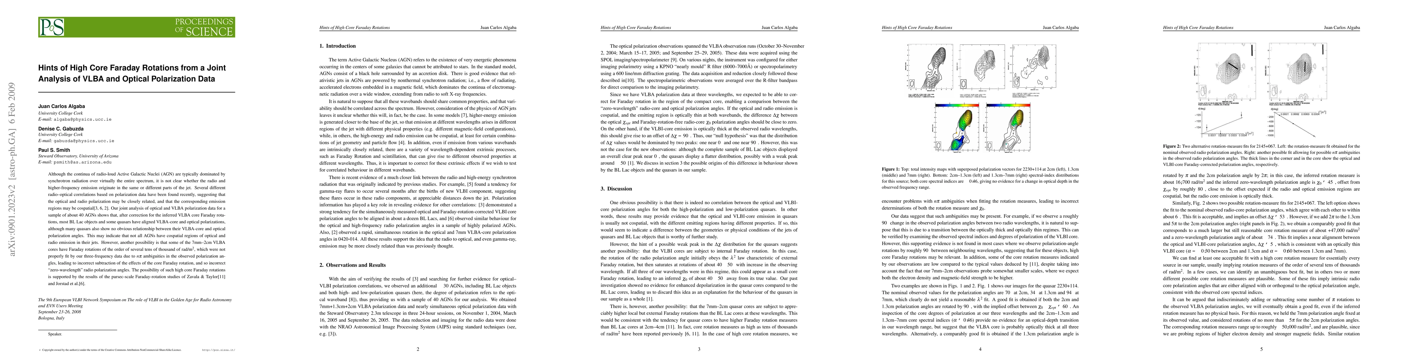 This study analyzes VLBA and optical polarization data from around 40 AGNs, finding that after correcting for VLBA core Faraday rotations, BL Lac objects and some quasars show aligned polarizations, suggesting cospatial emission regions. However, many quasars lack such relationships, implying non-cospatial regions. The research also suggests the possibility of high core Faraday rotations, previously unaccounted for, which could explain discrepancies in polarization angle alignments.