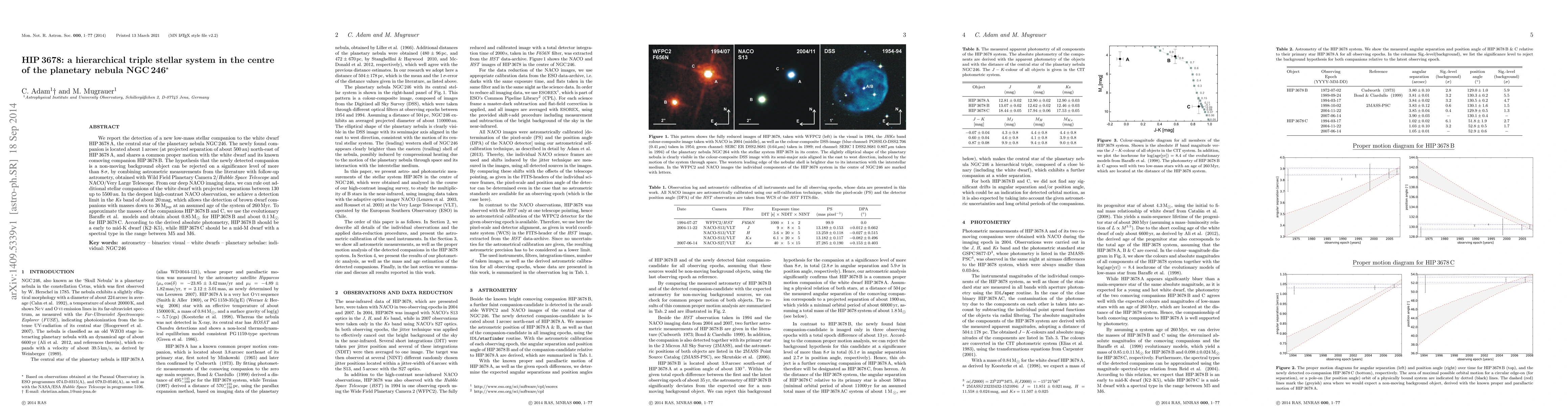 We report the detection of a new low-mass stellar companion to the white dwarf HIP 3678 A, the central star of the planetary nebula NGC 246. The newly found companion is located about 1 arcsec (at projected separation of about 500 au) north-east of HIP 3678 A, and shares a common proper motion with the white dwarf and its known comoving companion HIP 3678 B. The hypothesis that the newly detected companion is a non-moving background object can be rejected on a significance level of more than 8 $\sigma$, by combining astrometric measurements from the literature with follow-up astrometry, obtained with Wild Field Planetary Camera 2/\textit{Hubble Space Telescope} and NACO/Very Large Telescope. From our deep NACO imaging data, we can rule out additional stellar companions of the white dwarf with projected separations between 130 up to 5500 au. In the deepest high-contrast NACO observation, we achieve a detection limit in the \textit{Ks} band of about 20 mag, which allows the detection of brown dwarf companions with masses down to 36$\,\rmn{M_{jup}}$ at an assumed age of the system of 260 Myr. To approximate the masses of the companions HIP 3678 B and C, we use the evolutionary Baraffe et al. models and obtain about 0.85\,M$_{\sun}$ for HIP 3678 B and about 0.1 M$_{\sun}$ for HIP 3678 C. According to the derived absolute photometry, HIP 3678 B should be a early to mid-K dwarf (K2--K5), while HIP 3678 C should be a mid-M dwarf with a spectral type in the range between M5 and M6.