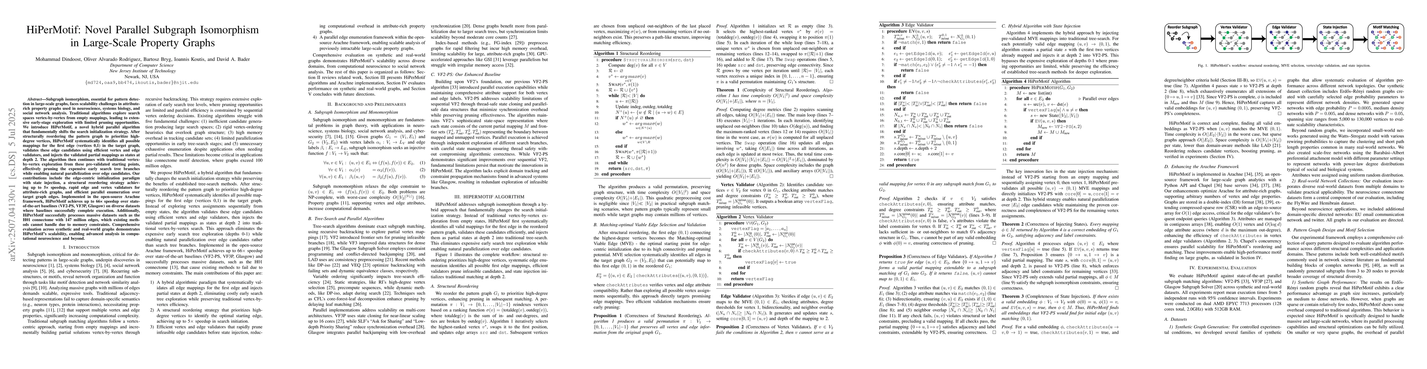 Subgraph isomorphism, essential for pattern detection in large-scale graphs, faces scalability challenges in attribute-rich property graphs used in neuroscience, systems biology, and social network analysis. Traditional algorithms explore search spaces vertex-by-vertex from empty mappings, leading to extensive early-stage exploration with limited pruning opportunities. We introduce HiPerMotif, a novel hybrid parallel algorithm that fundamentally shifts the search initialization strategy. After structurally reordering the pattern graph to prioritize high-degree vertices, HiPerMotif systematically identifies all possible mappings for the first edge (vertices 0,1) in the target graph, validates these edge candidates using efficient vertex and edge validators, and injects the validated partial mappings as states at depth 2. The algorithm then continues with traditional vertex-by-vertex exploration from these pre-validated starting points, effectively pruning the expensive early search tree branches while enabling natural parallelization over edge candidates. Our contributions include the edge-centric initialization paradigm with state injection, a structural reordering strategy achieving up to 5x speedup, rapid edge and vertex validators for attribute-rich graphs, and efficient parallel enumeration over target graph edges. Implemented in the open-source Arachne framework, HiPerMotif achieves up to 66x speedup over state-of-the-art baselines (VF2-PS, VF3P, Glasgow) on diverse datasets where baselines successfully complete execution. Additionally, HiPerMotif successfully processes massive datasets such as the H01 connectome with 147 million edges, which existing methods cannot handle due to memory constraints. Comprehensive evaluation across synthetic and real-world graphs demonstrates HiPerMotif's scalability, enabling advanced analysis in computational neuroscience and beyond.