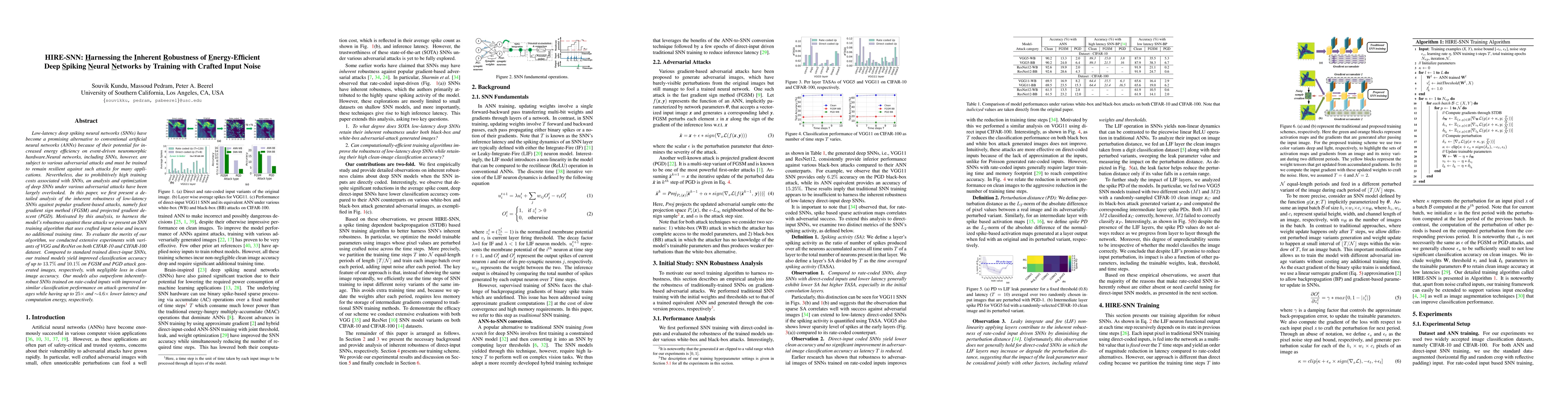 This paper proposes a training algorithm for deep spiking neural networks (SNNs) using crafted input noise to enhance their robustness against adversarial attacks without additional training time. Experiments show improved accuracy under gradient-based attacks with significant energy efficiency gains compared to standard and rate-coded SNNs.
