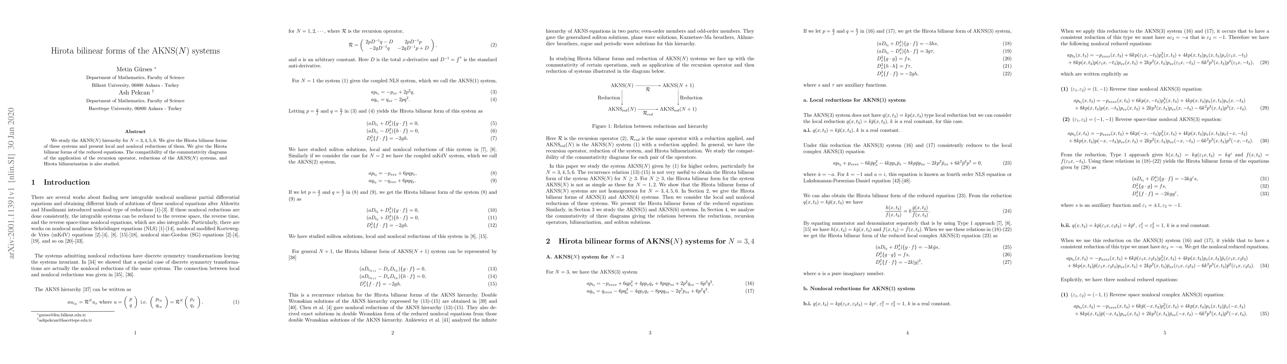 We study the AKNS($N$) hierarchy for $N=3,4,5,6$. We give the Hirota bilinear forms of these systems and present local and nonlocal reductions of them. We give the Hirota bilinear forms of the reduced equations. The compatibility of the commutativity diagrams of the application of the recursion operator, reductions of the AKNS($N$) systems, and Hirota bilinearization is also studied.
