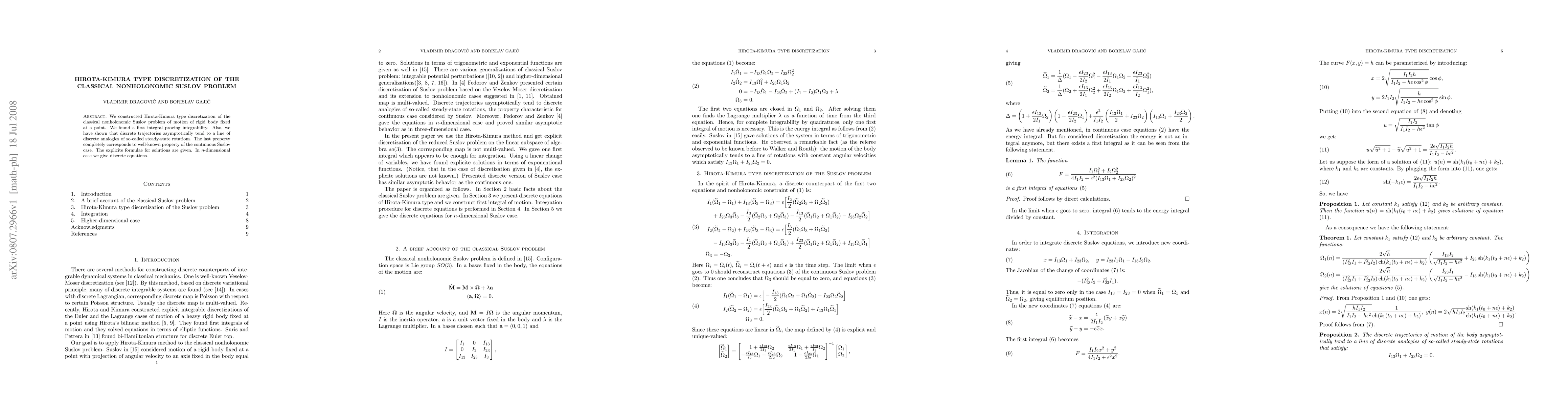 This paper constructs a Hirota-Kimura type discretization of the classical nonholonomic Suslov problem, proving integrability through a first integral and demonstrating that discrete trajectories asymptotically approach steady-state rotations, mirroring the continuous case. Explicit formulae and discrete equations for n-dimensional cases are provided.