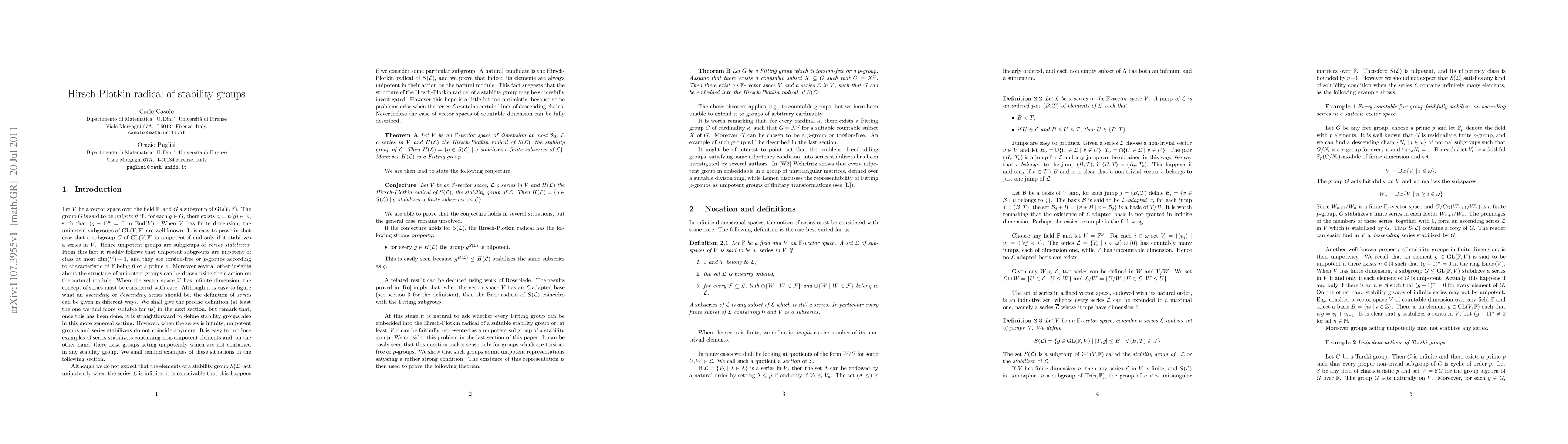 We study the Hirsch-Plotkin radical of stability groups of (general) subspace series of infinite dimensional vector spaces. We show that in countable dimension and some other cases, the HP-radical of the stability group coincides with the set of all space automorphisms that fix a finite sub-series; this implies that the HP radical is a Fitting group. Conversely, we prove that every countable Fitting group, which is either torsion-free or a p-group may be represented as a subgroup of the HP radical of a series stabilizer.